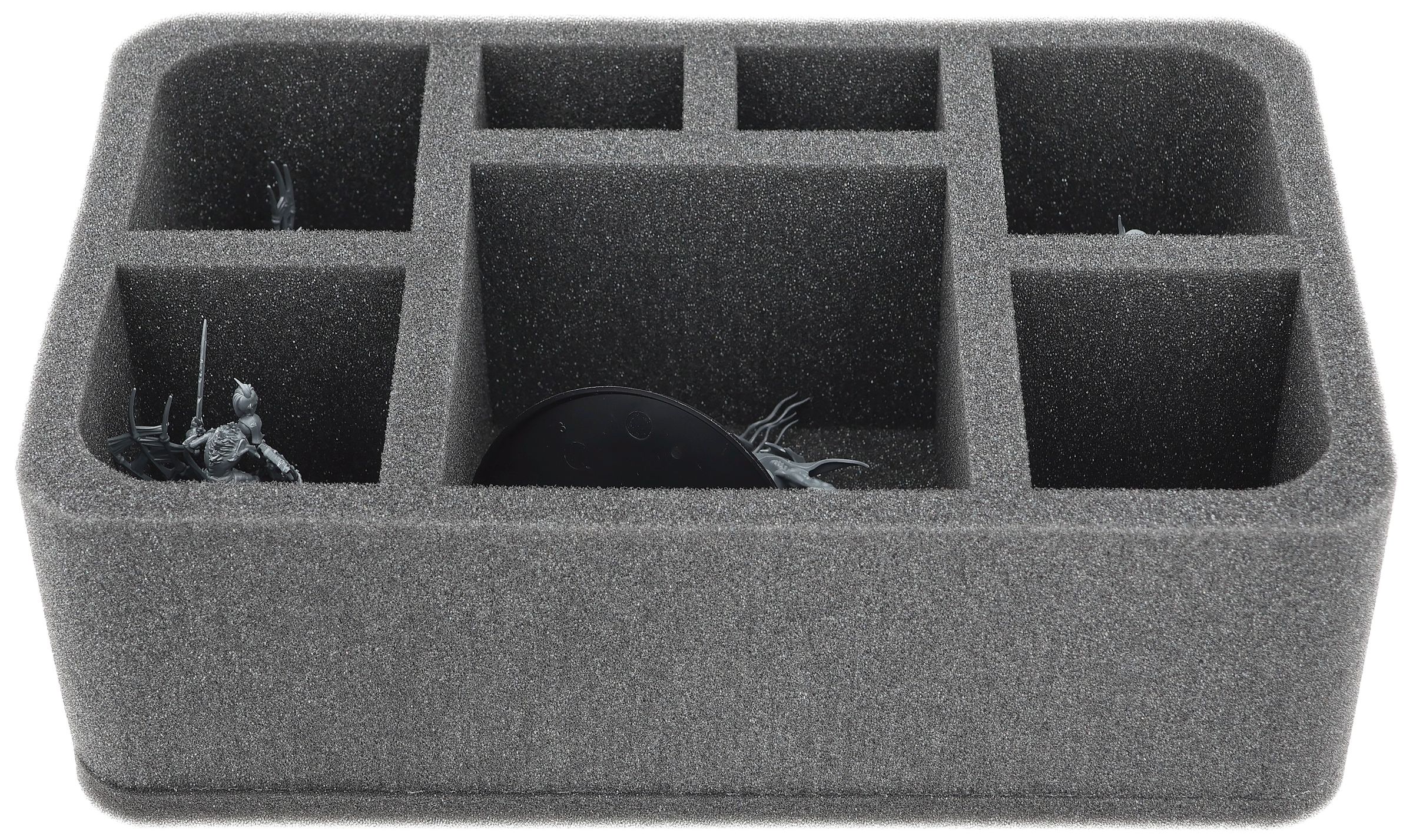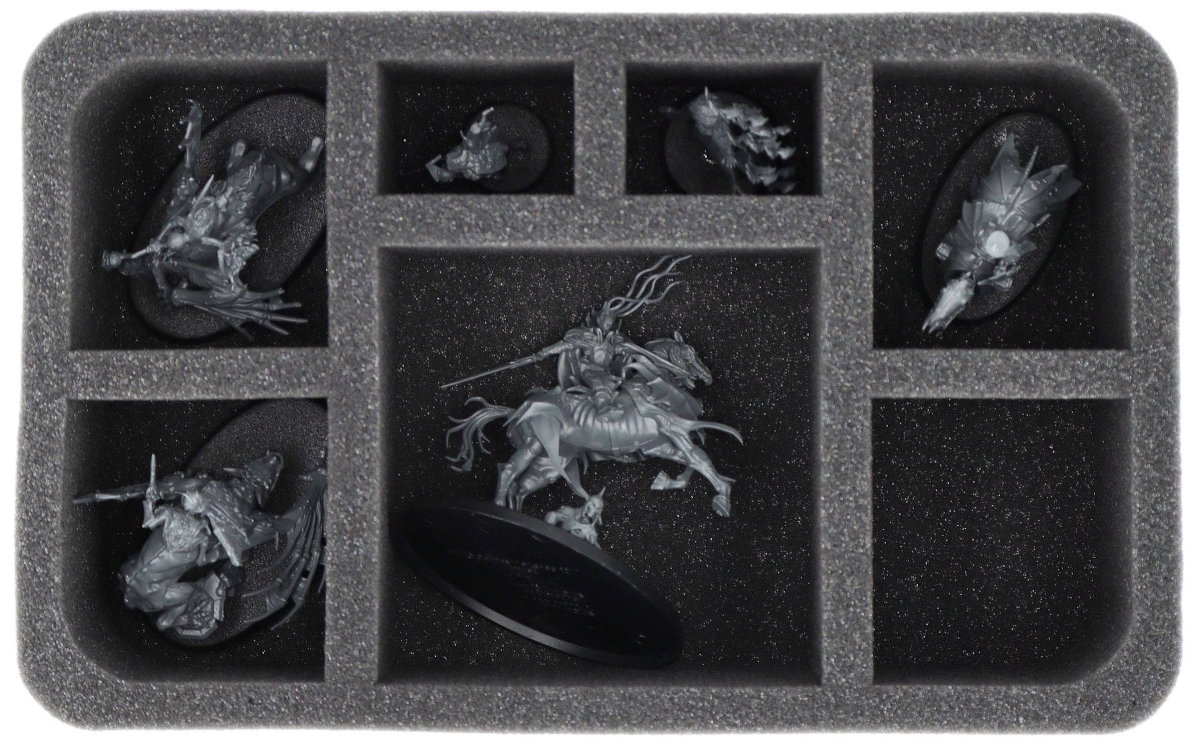 On this Feldherr foam tray you have space for up to 7 miniatures of your army. The insert is especially suitable for storing the Vampire Lord on Nightmare Steed and similar sized models.