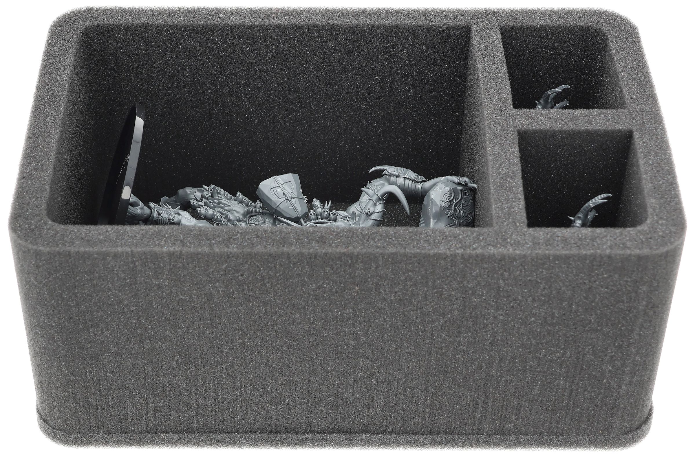 This Feldherr foam insert has space for up to 3 miniatures from your army. The large compartment is ideal for storing large models, such as a Zygor or Ghorgon. The two adjacent compartments offer space for two smaller but bulky models, such as standard bearers from the Gor Herd.