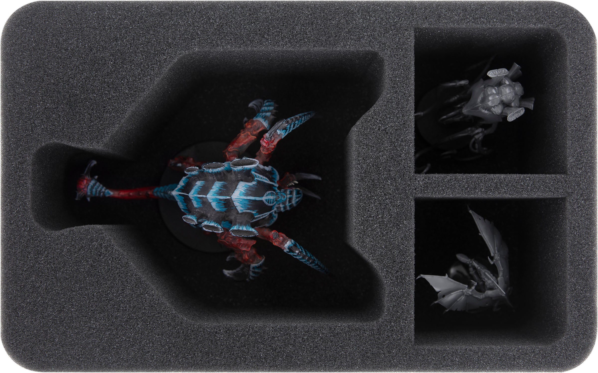 A large, miniature-precisely cut compartment houses one Carnifex model of the Tyranids, providing optimal protection for your miniature. The soft foam not only protects the delicate details, such as the claws or the prickly shrike, but also the colors of the painted miniature remain unharmed.