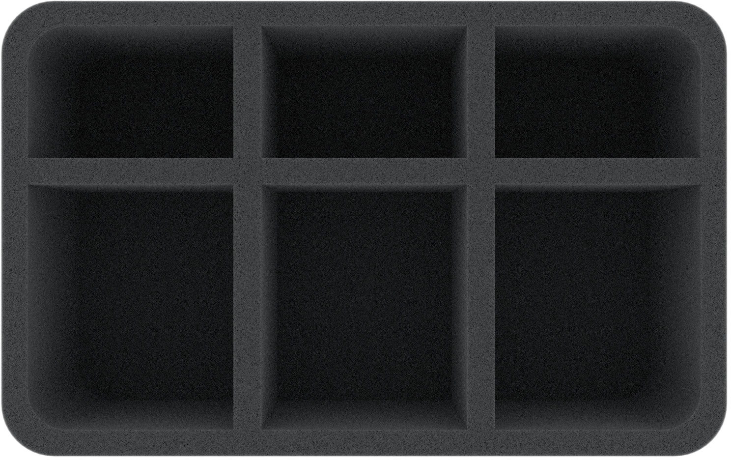 This 100 mm high foam tray is divided into 6 compartments. It is particularly suitable for the safe storage of tabletop and board game miniatures, as well as other fragile models and small parts.