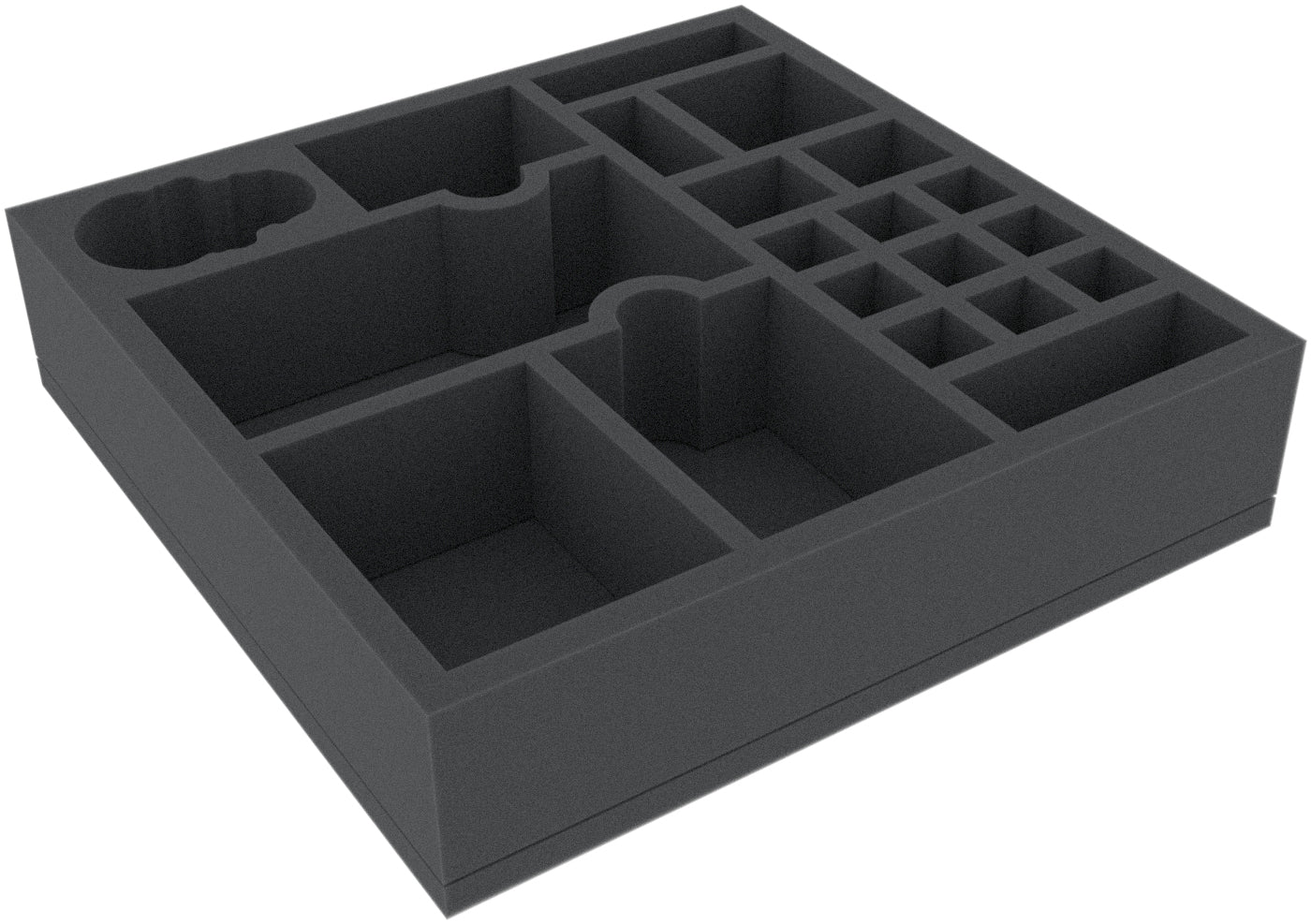 This 60 mm high foam tray is divided into 20 compartments. It is particularly suitable for the safe storage of tabletop and board game miniatures, as well as other fragile models and small parts.