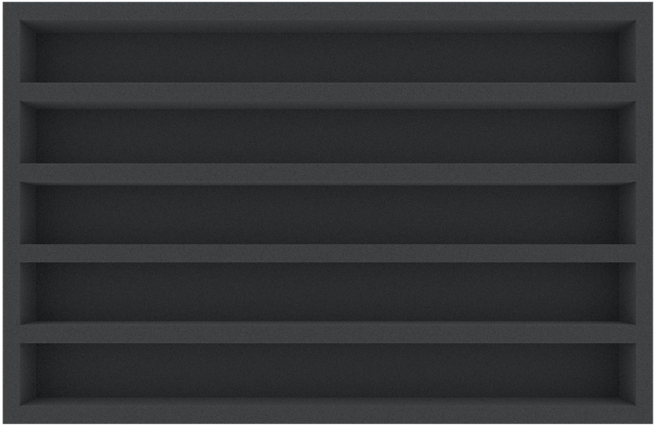 This 50 mm high foam tray is divided into 5 compartments. It is particularly suitable for the safe storage of tabletop and board game miniatures, model trains, as well as other fragile models and small parts.