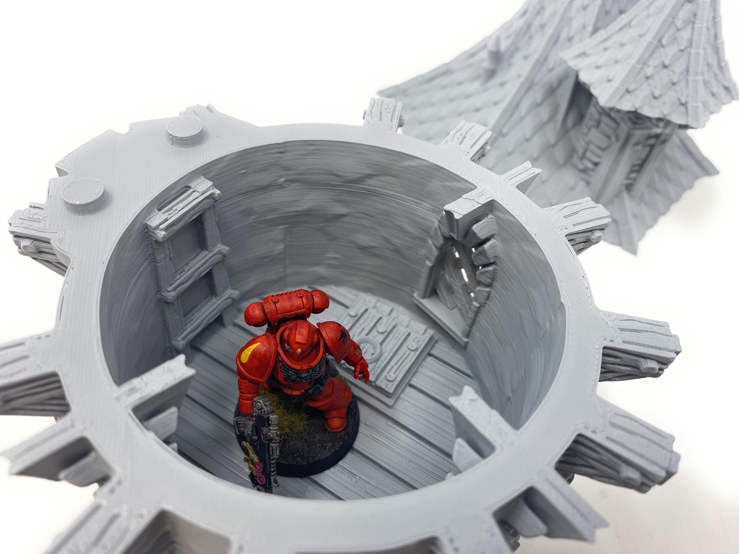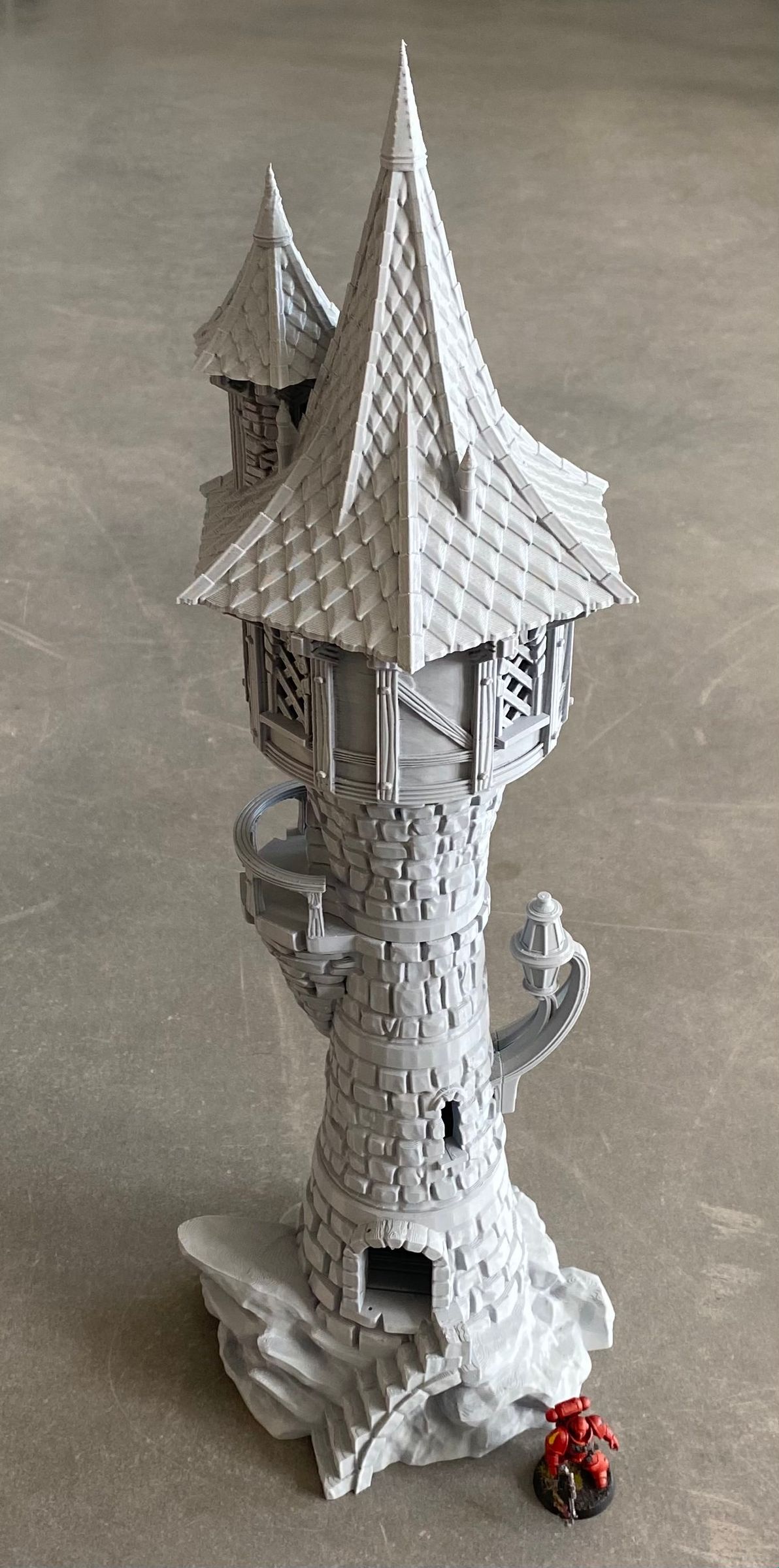 3D printed crow tower, with removable roof and levels and detailed interior. The intricately designed tower can be used as a terrain piece for your tabletop game or part of your medieval model village. In any case, it towers everything!