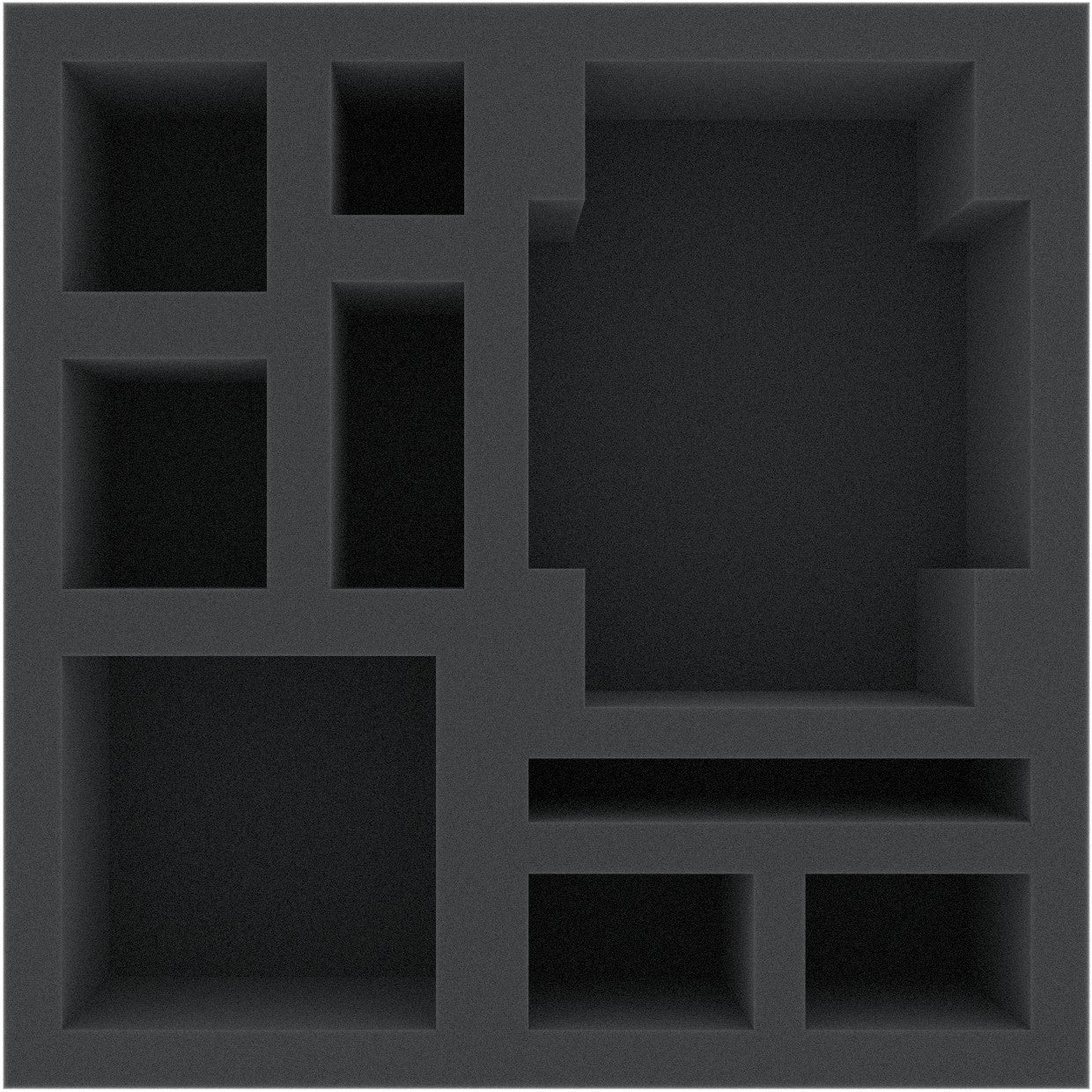 Special designed foam tray for all miniatures and cards in sleeves from Arcadia Quest: Whole Lotta Lava expansion. The tray fits perfect the original Whole Lotta Lava box (212 mm x 212 mm). The Set comes with an extra foam topper.