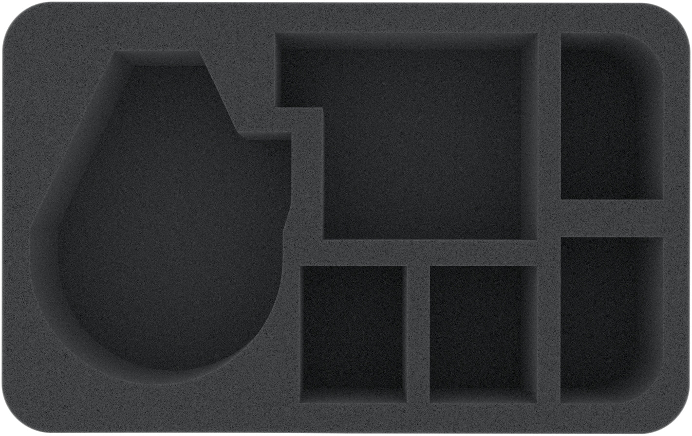 This 50 mm high foam tray is divided into 6 compartments. It is particularly suitable for the safe storage of tabletop and board game miniatures, as well as other fragile models and small parts.