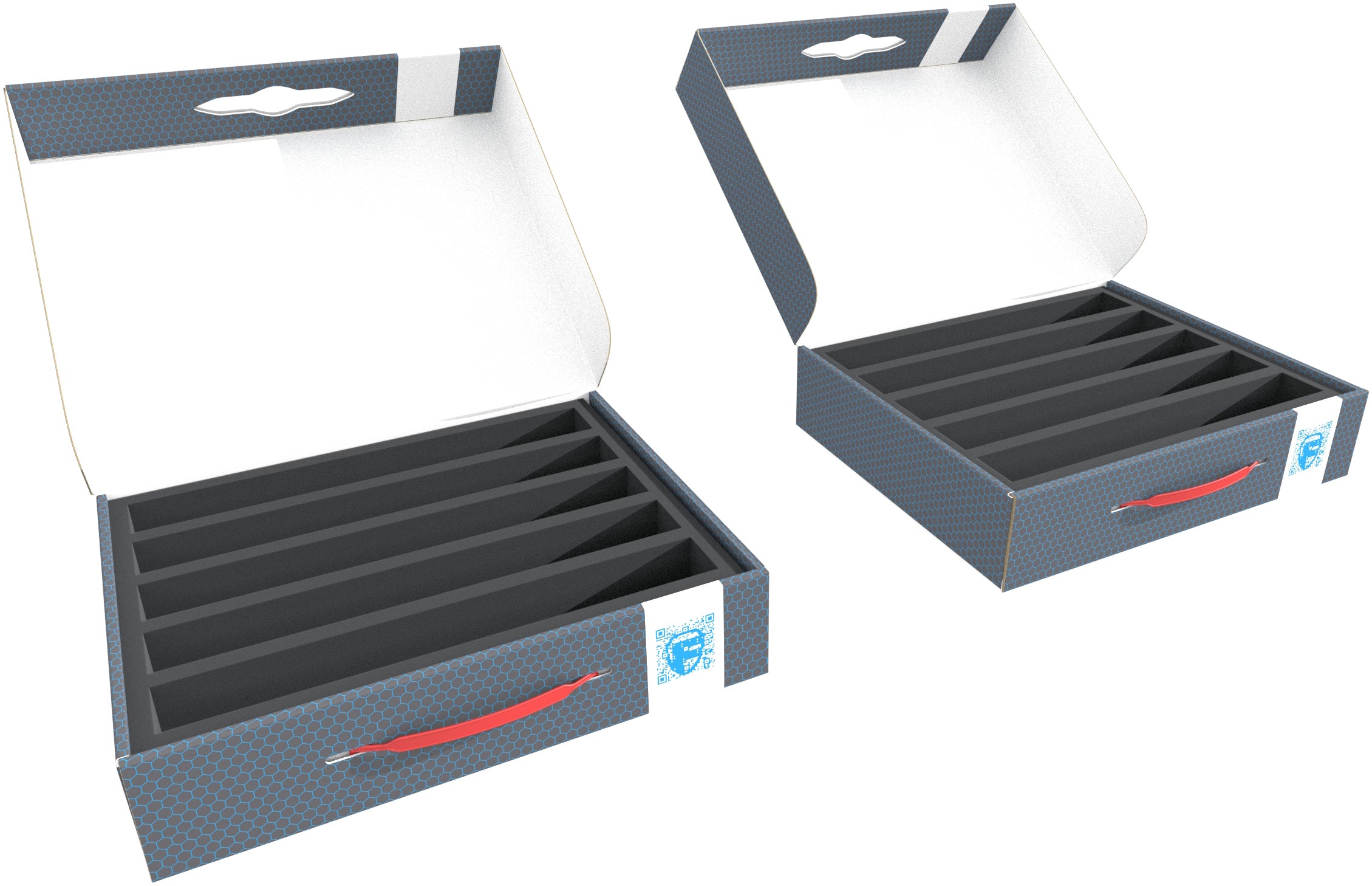 The inlay is fits perfectly into the Feldherr Storage Box FSLB075. The box is made of coated, double-walled cardboard. This makes it not only pleasantly light but also particularly tear-resistant and stable. Your models can thus be stored safely and dust-protected. The plastic carrying handle makes transporting easy.