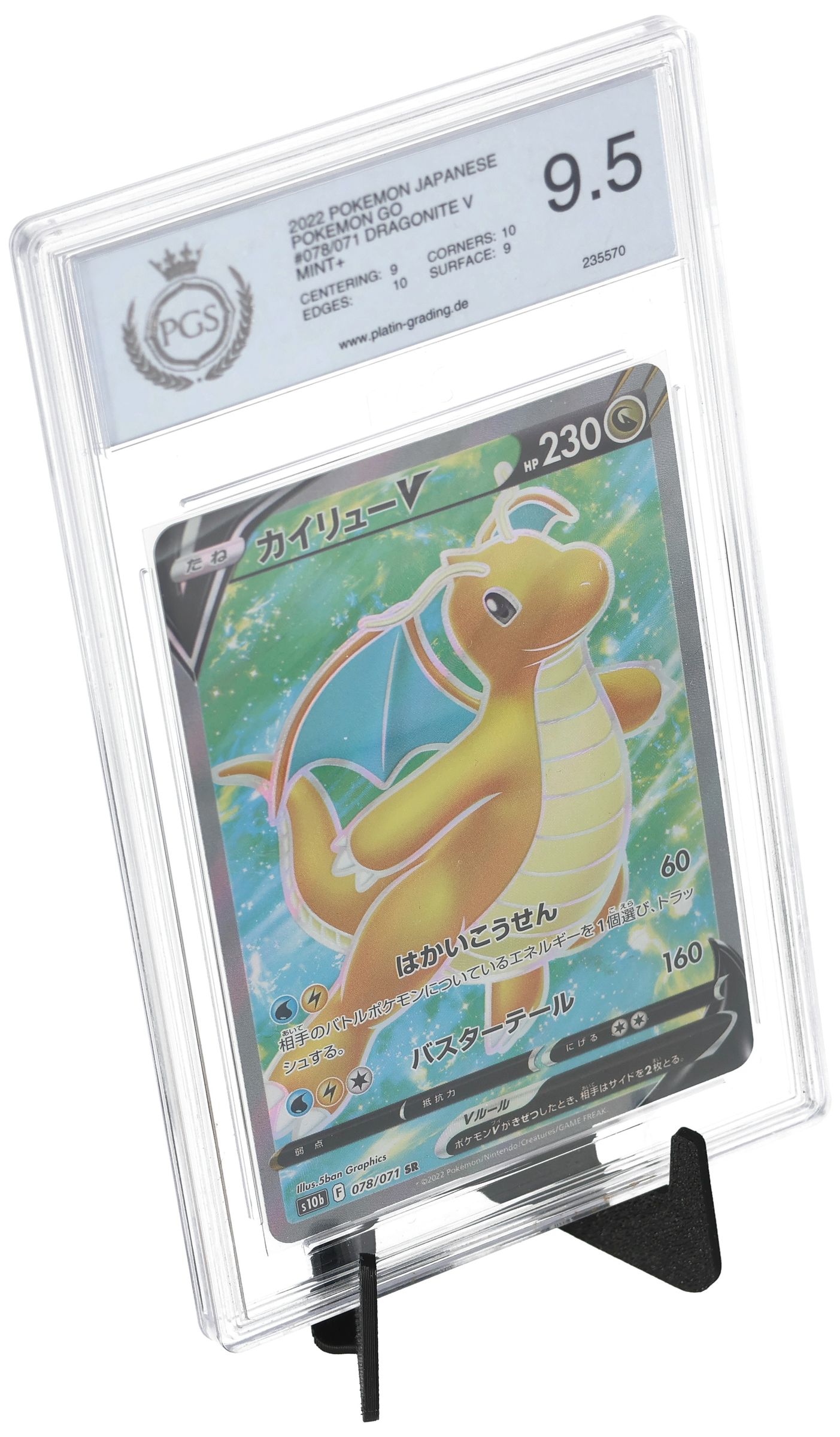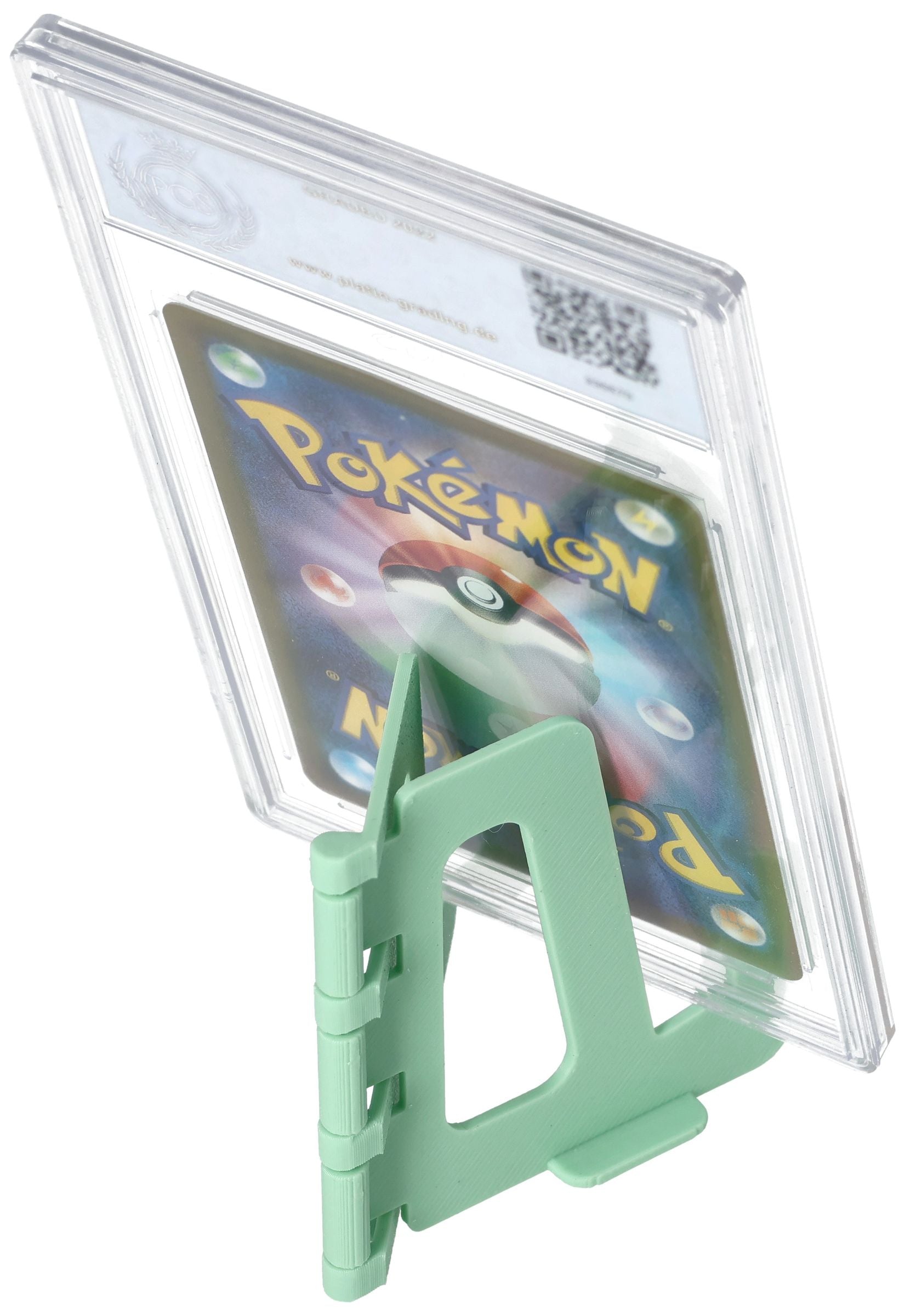 The card stand is compatible with PSA, BGS, CGC, Ultra PRO ONE-TOUCH displays, and other grading cases or top loaders up to 8 mm thickness. Its discreet design does not distract from the card and holds it at an optimal angle of approx. 10° - ideal for an upright, slightly tilted presentation.