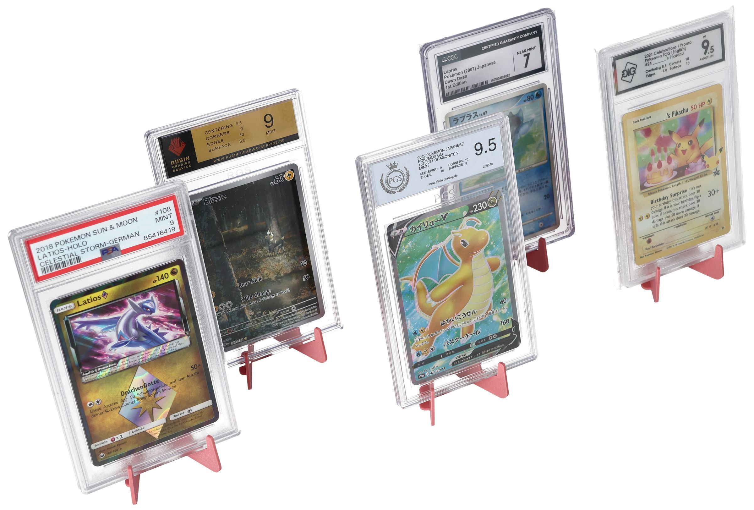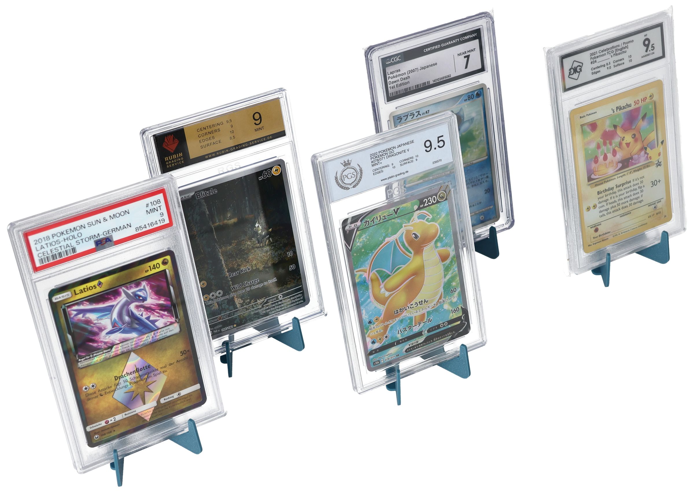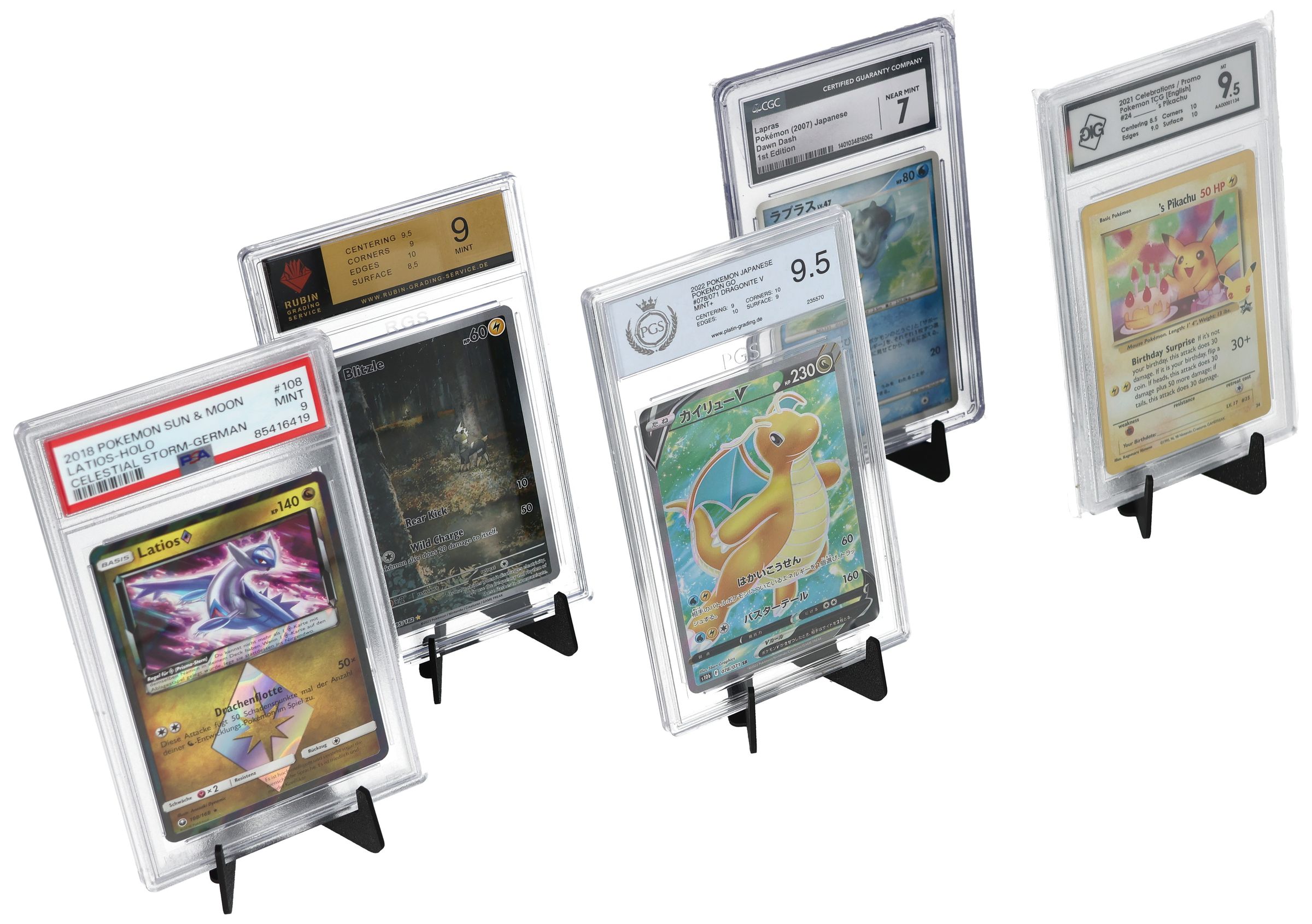 • Stand for graded cards, trading cards, and collectible cards in slabs and toploader - secure hold for cases up to 8 mm thick