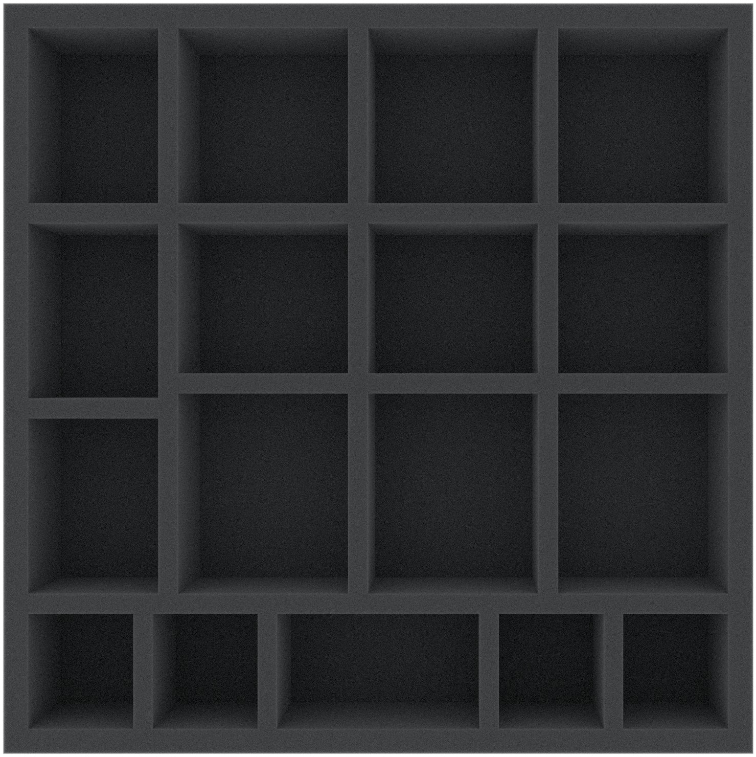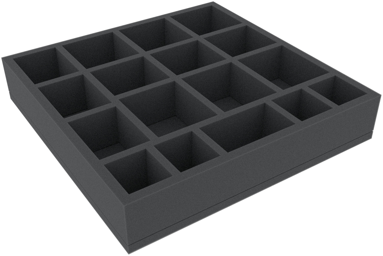 This 55 mm high foam tray is divided into 17 compartments. It is particularly suitable for the safe storage of tabletop and board game miniatures, as well as other fragile models and small parts.