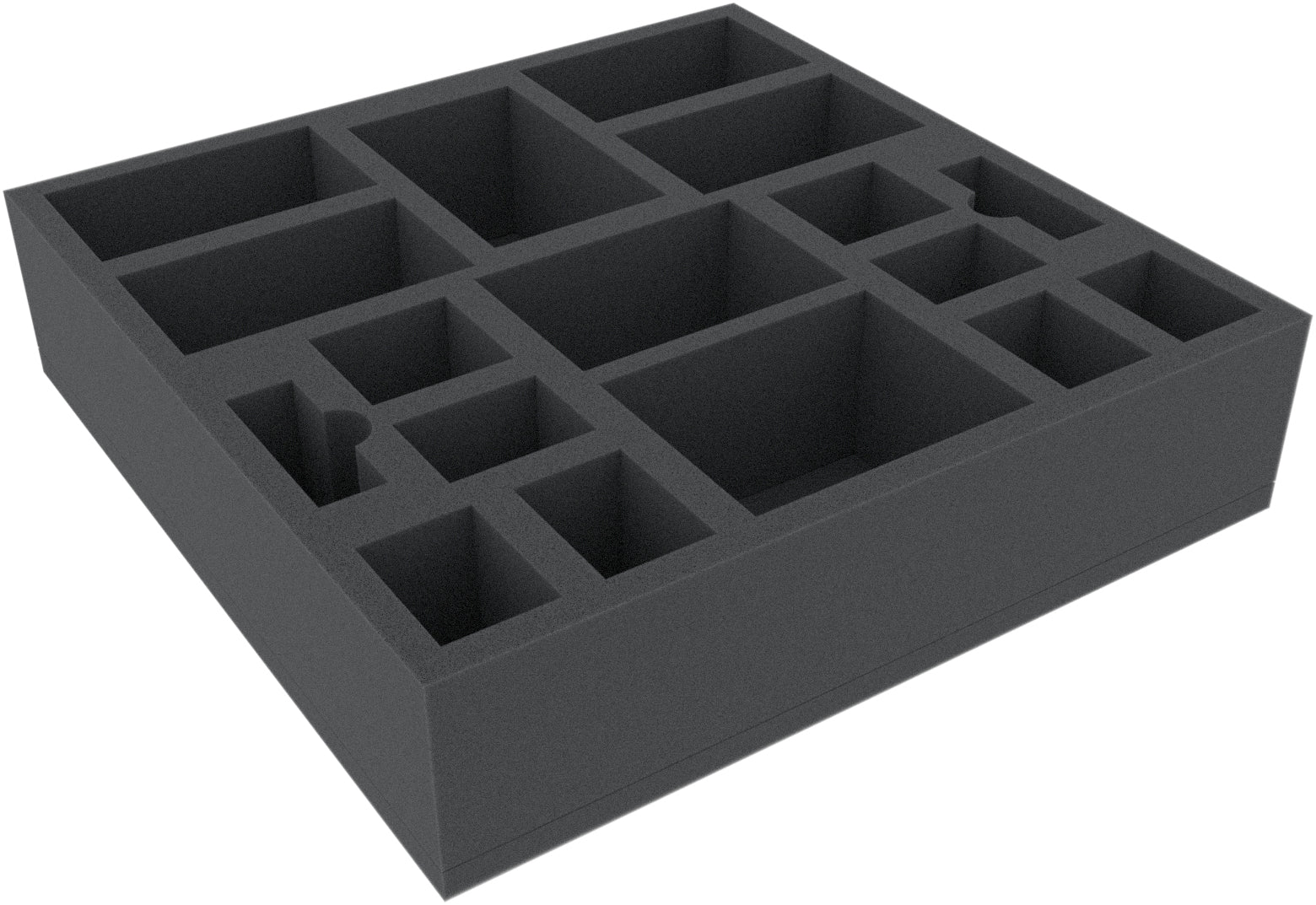 This foam tray has 17 compartments for the safe and orderly storage of board game miniatures and accessories.