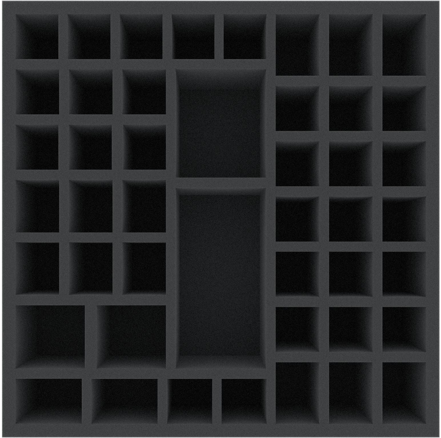 This 75 mm high foam tray is divided into 45 compartments. It is particularly suitable for the safe storage of tabletop and board game miniatures, as well as other fragile models and small parts.