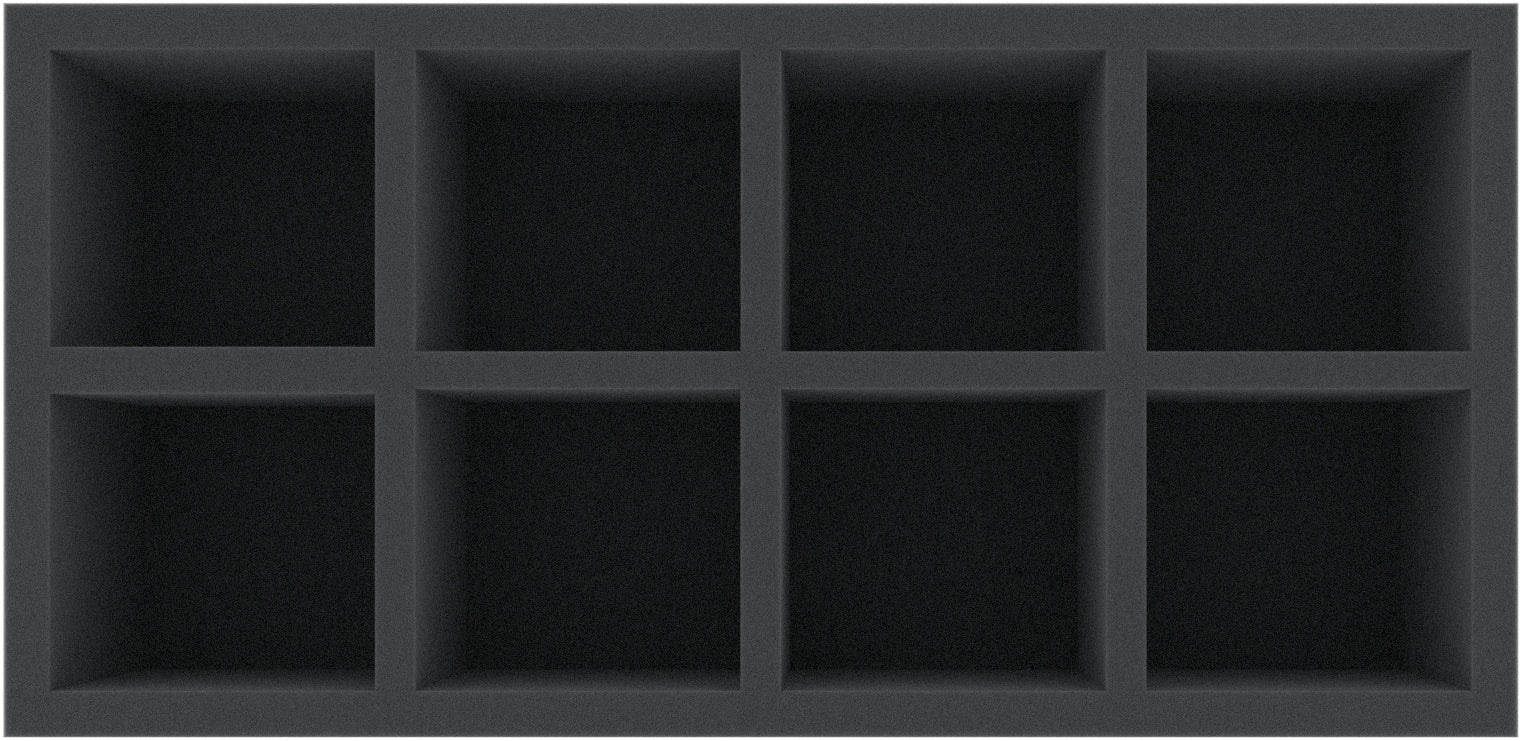 This foam tray has 8 compartments for the safe storage and orderly storage of large miniatures.