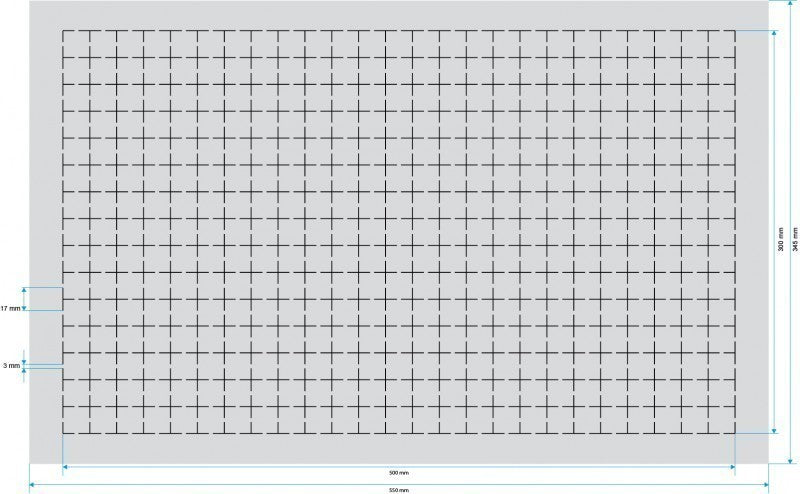 • Pre-punched grid with 20 mm x 20 mm size.