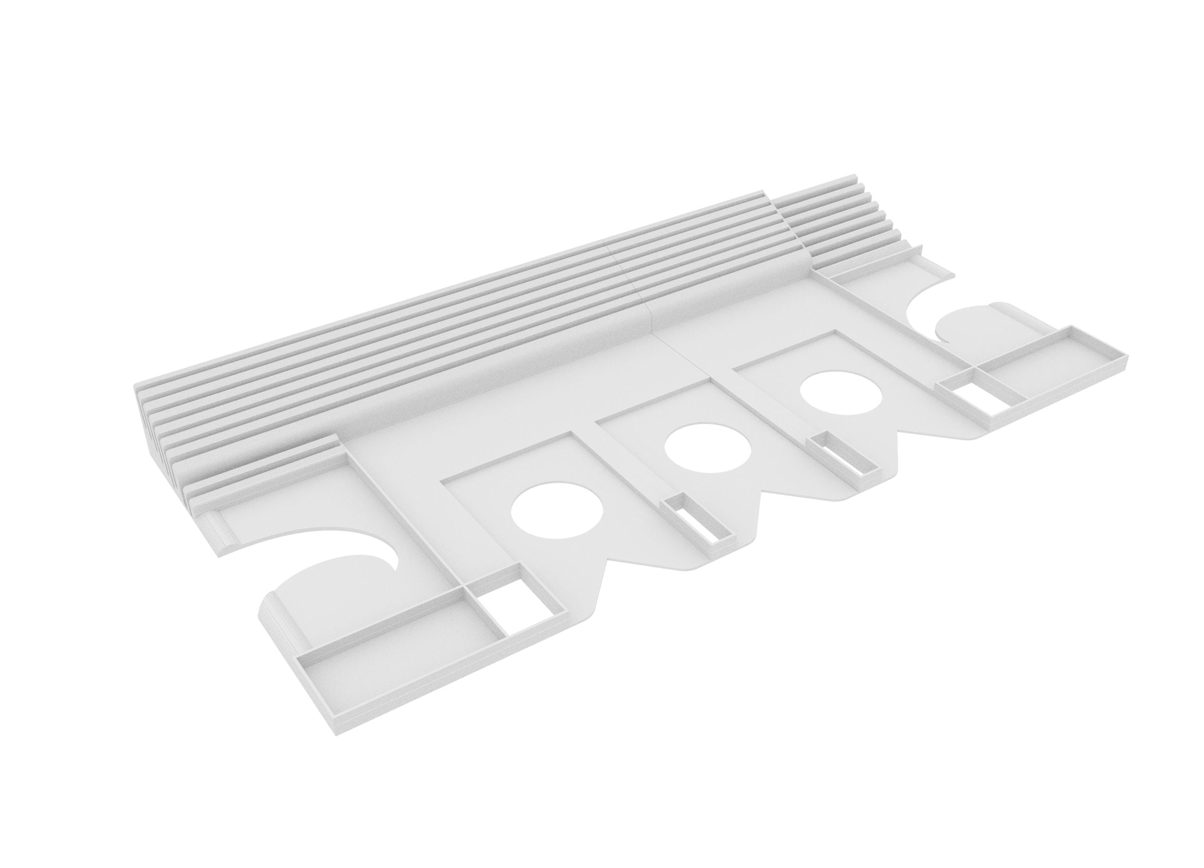 • The Dashboard offers custom compartments for the player board,, trophies, as well as draw and discard piles.