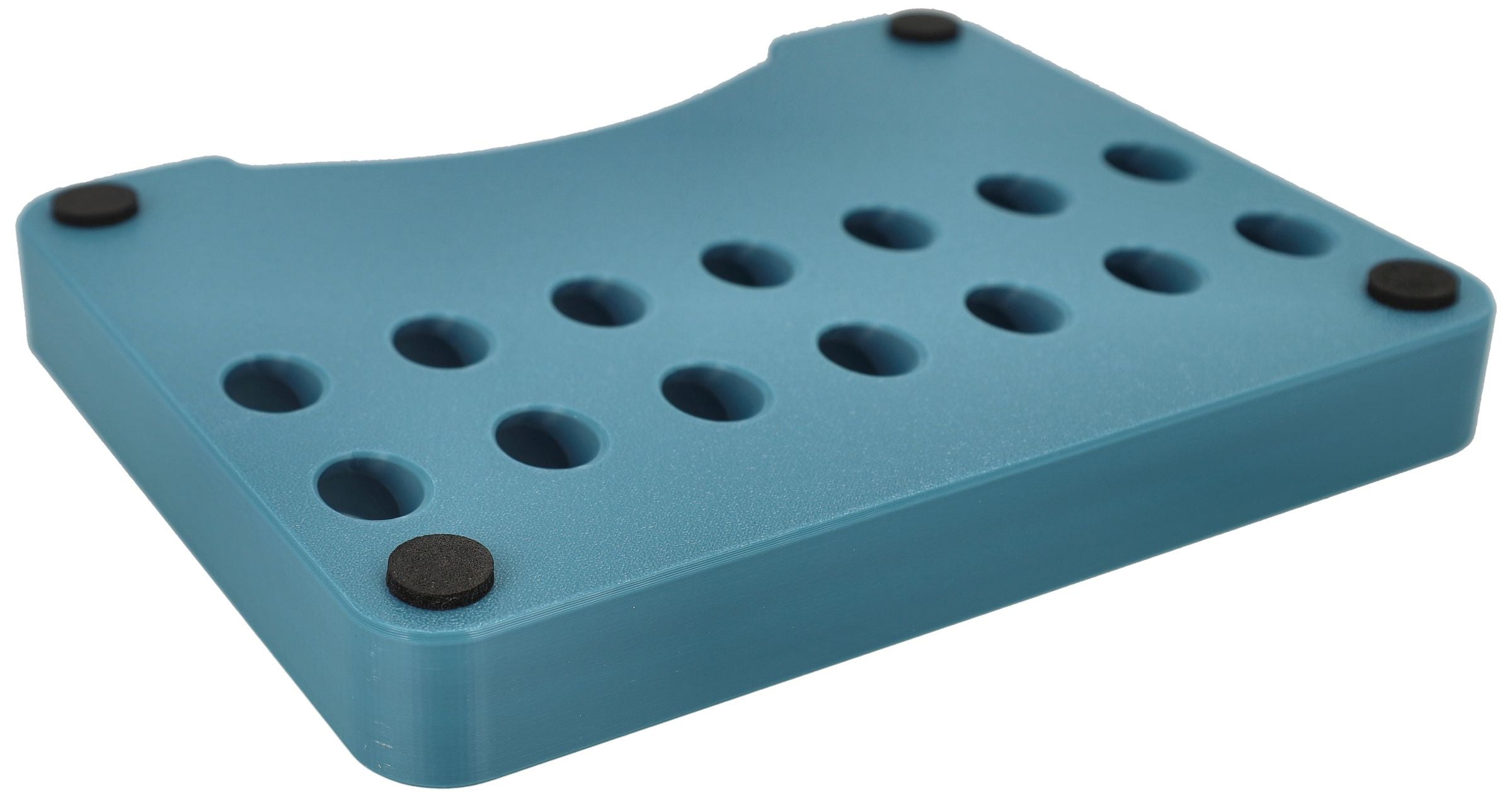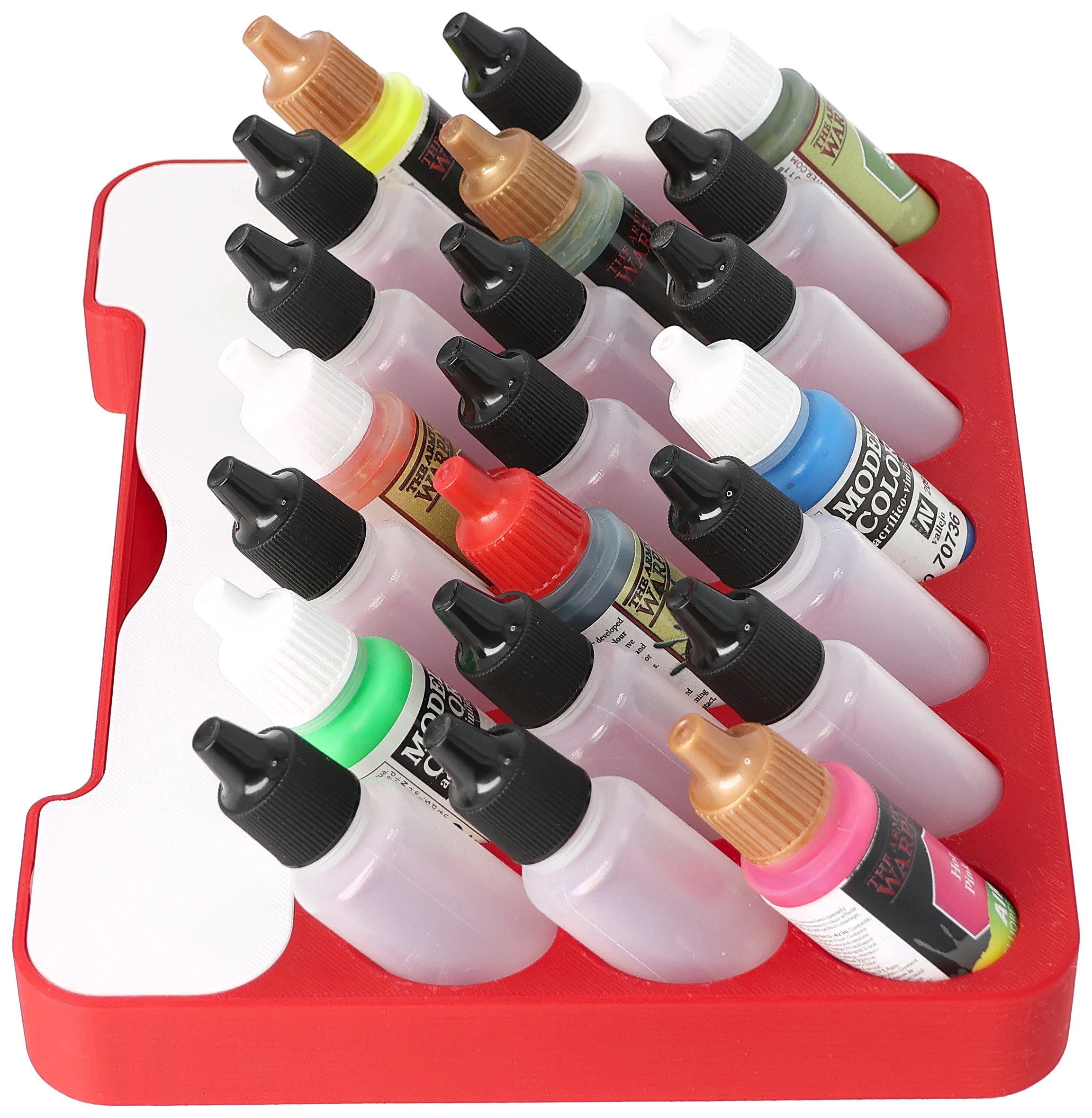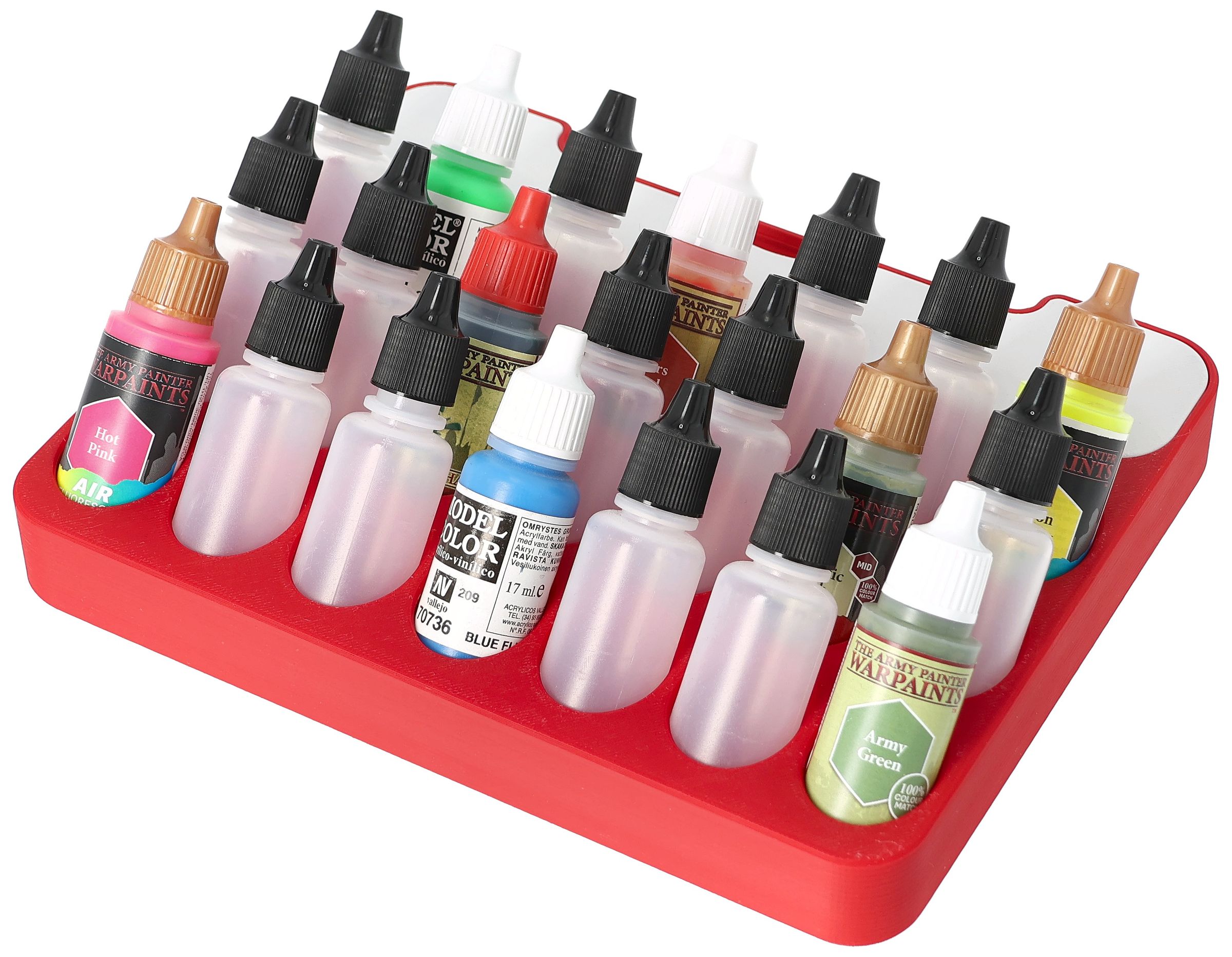 • Paint rack with 21 round compartments for paint bottles with a diameter of 25 mm - compatible with dropper bottles from Vallejo (17 ml), Army Painter (18 ml) and other common formats