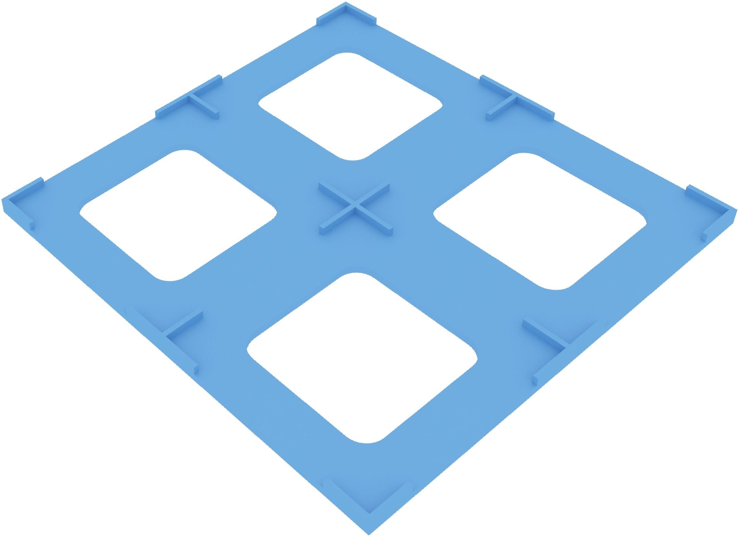 Internal dimensions per compartment: 55 mm long x 55 mm wide x 2 mm deep