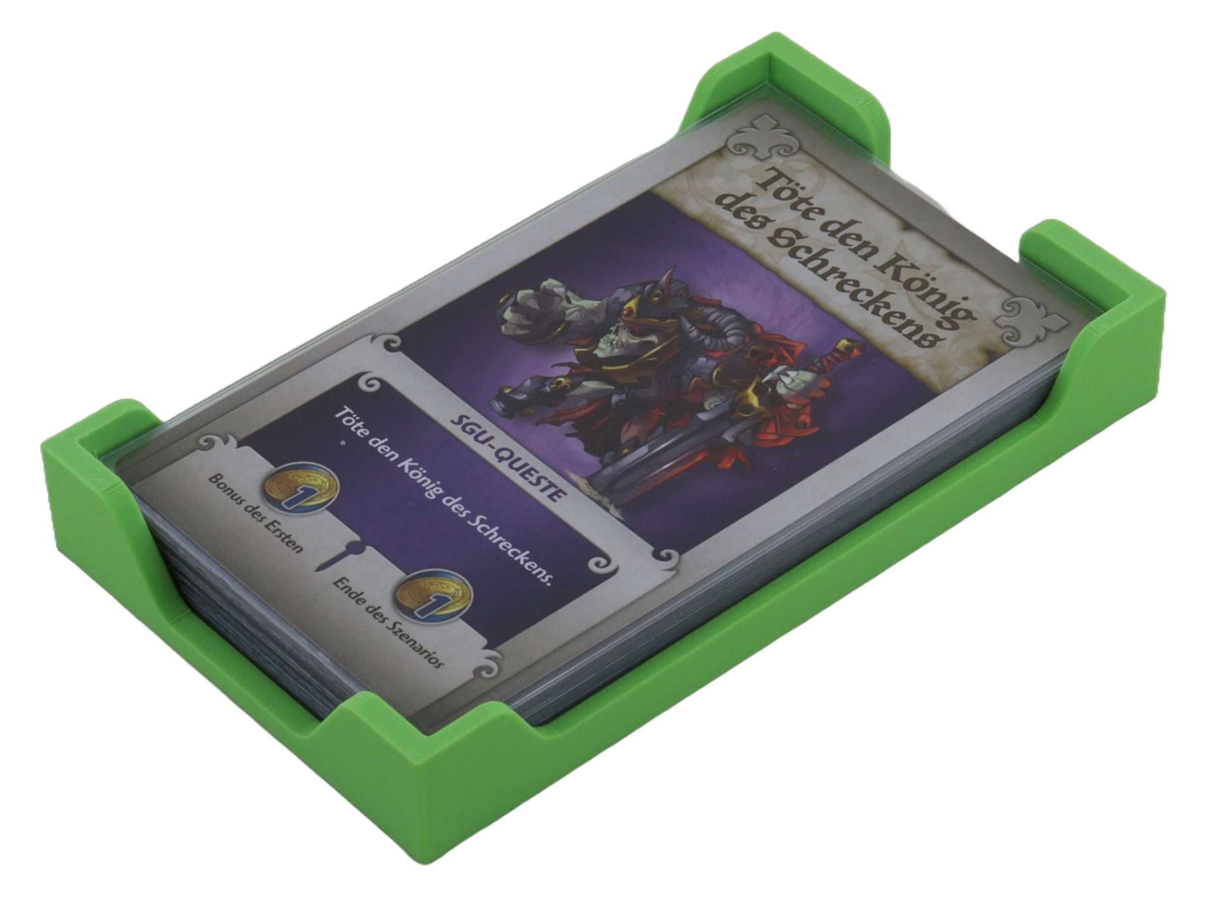 Whether tabletop, card game, or board game – the card holder saves nerves and time. It helps you organize different types of cards during the game, ensures that card stacks do not tip over even with sleeves, and you can neatly sort your playing cards at the end of the game.