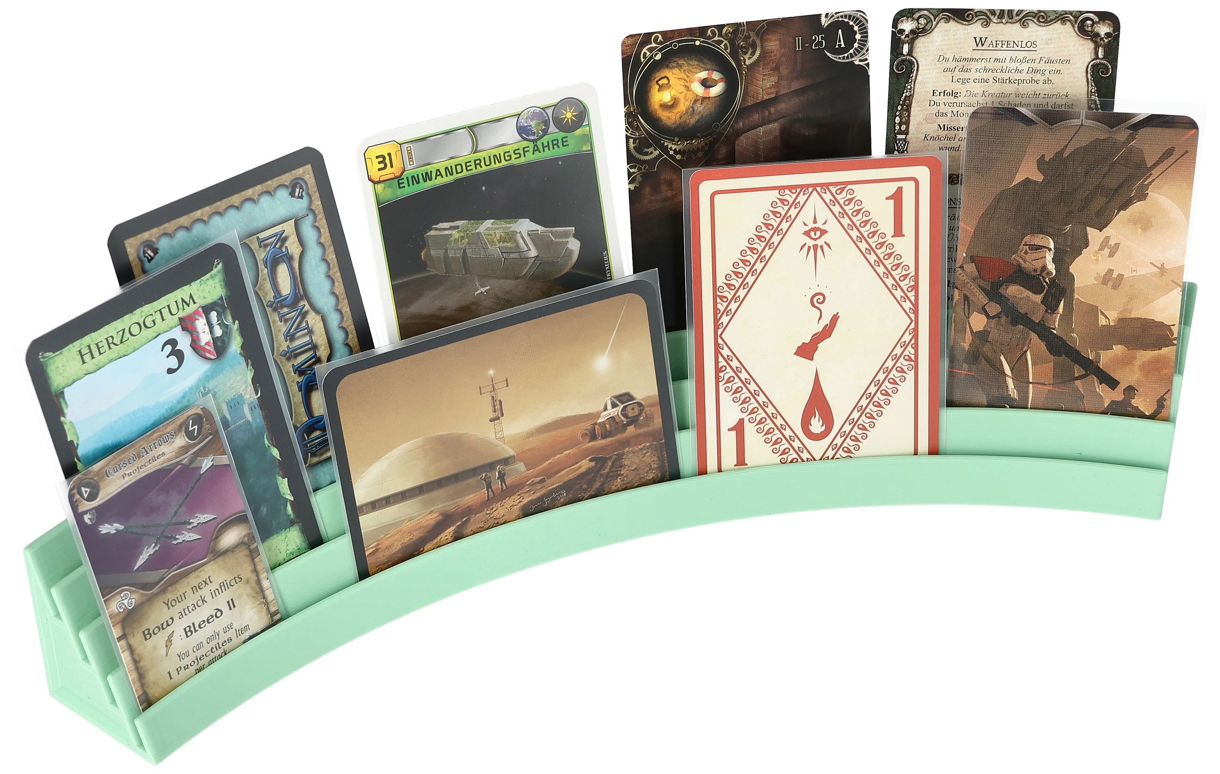 Too many cards in your hand and too little space on the gaming table? With this Feldherr card stand, you have your cards neatly and clearly arranged in front of you - for a relaxed game, a better overview and more space for the essentials.