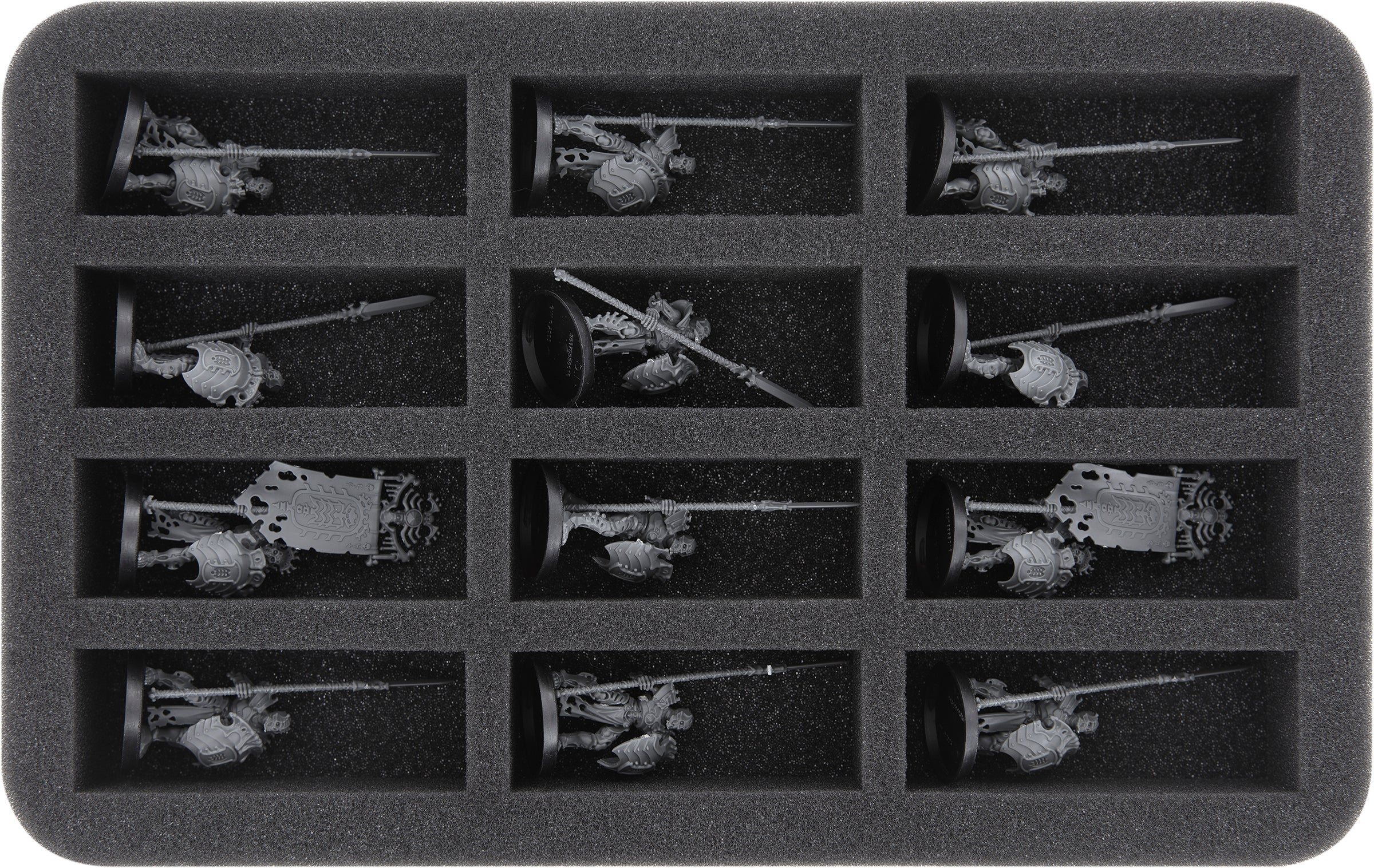 - 2 Half-Size foam trays each for 12 miniatures (HS040A018)