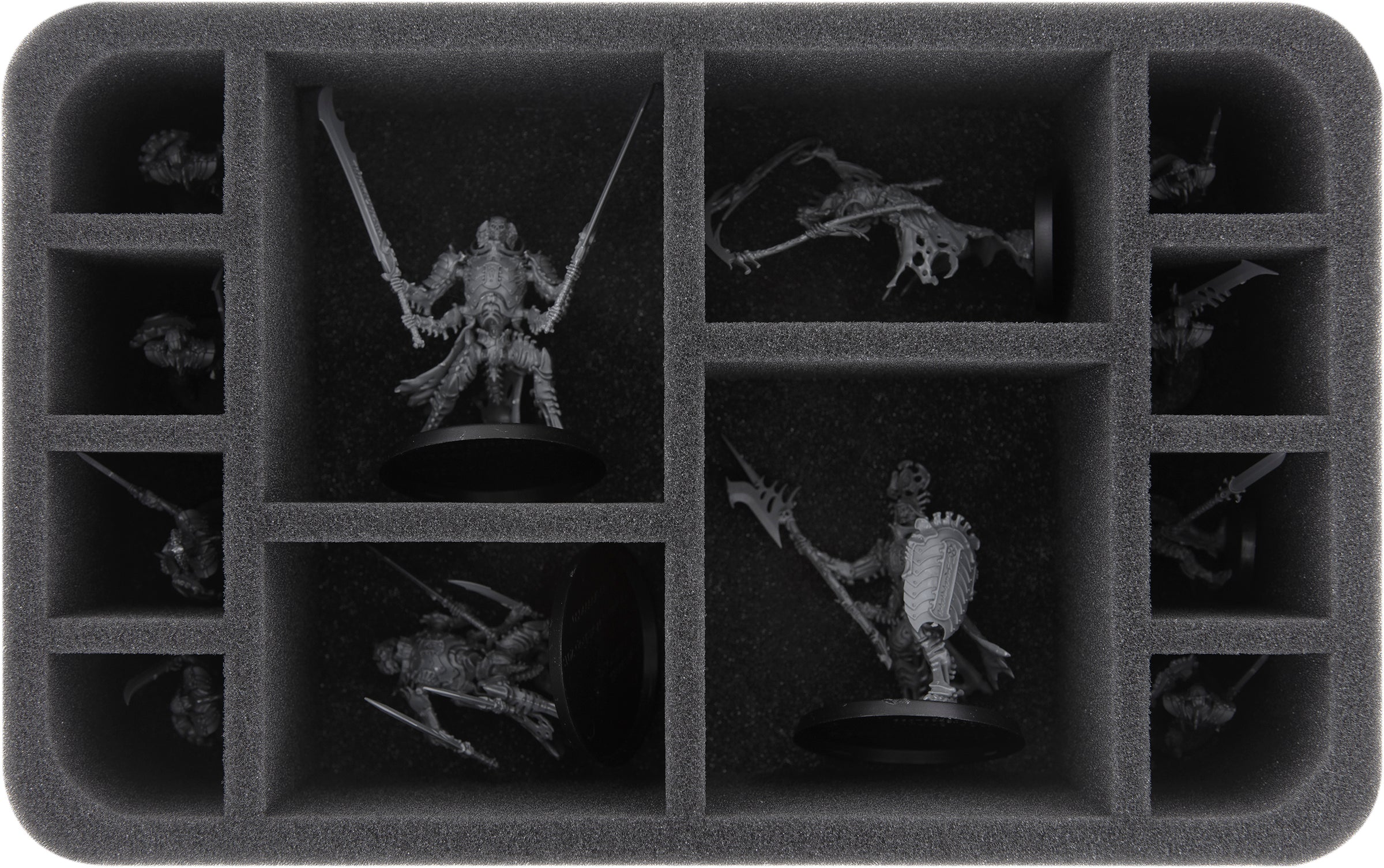 Two Half-Size trays (HS075A016) provide safe shelter for both bulky (Necropolis Stalkers, Immortis Guard) and standard models.