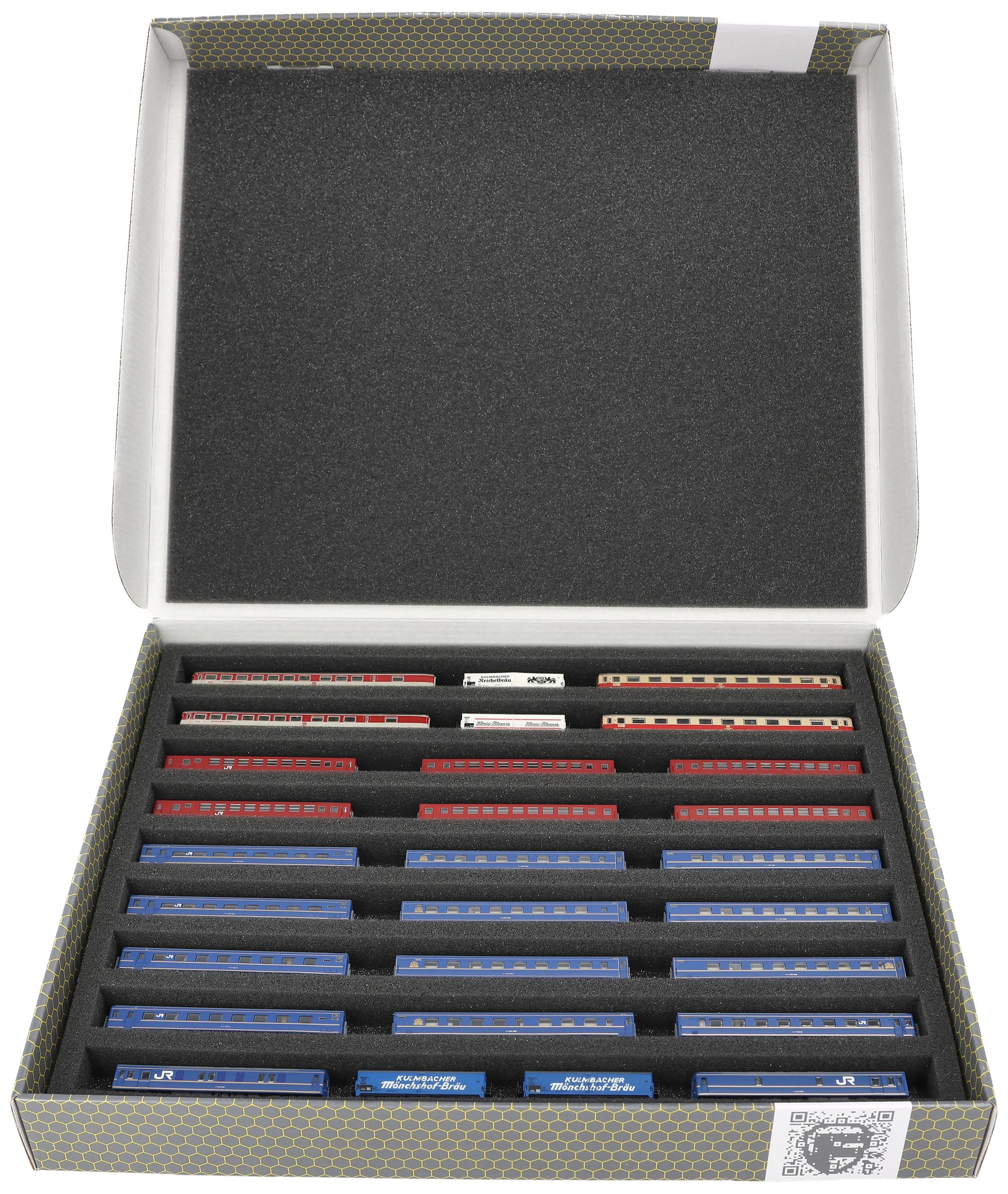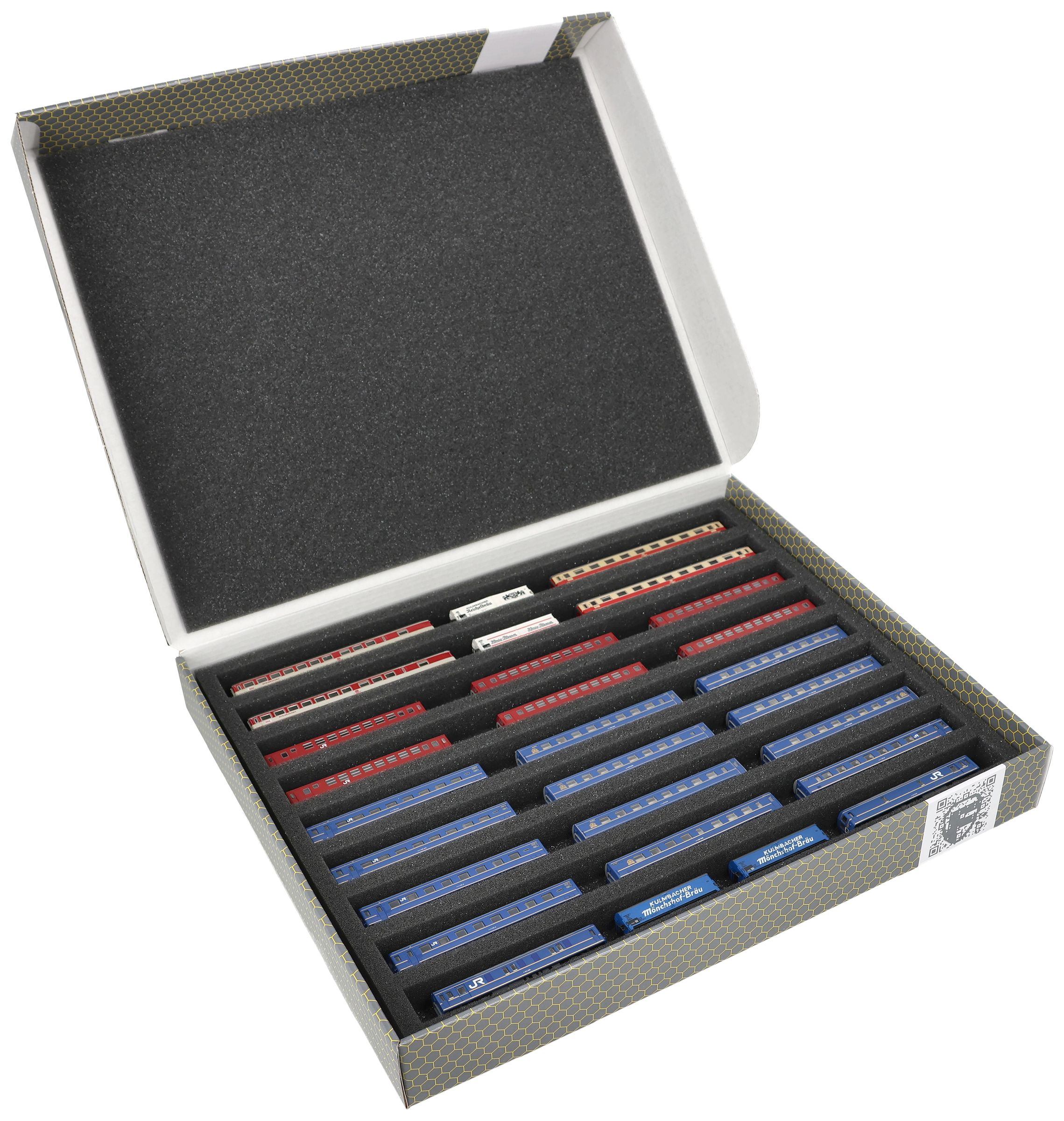 Nine compartments, tailor-made for model railways in upright position, in Gauge Z, offer your wagons and locomotives reliable protection for storage and transport.