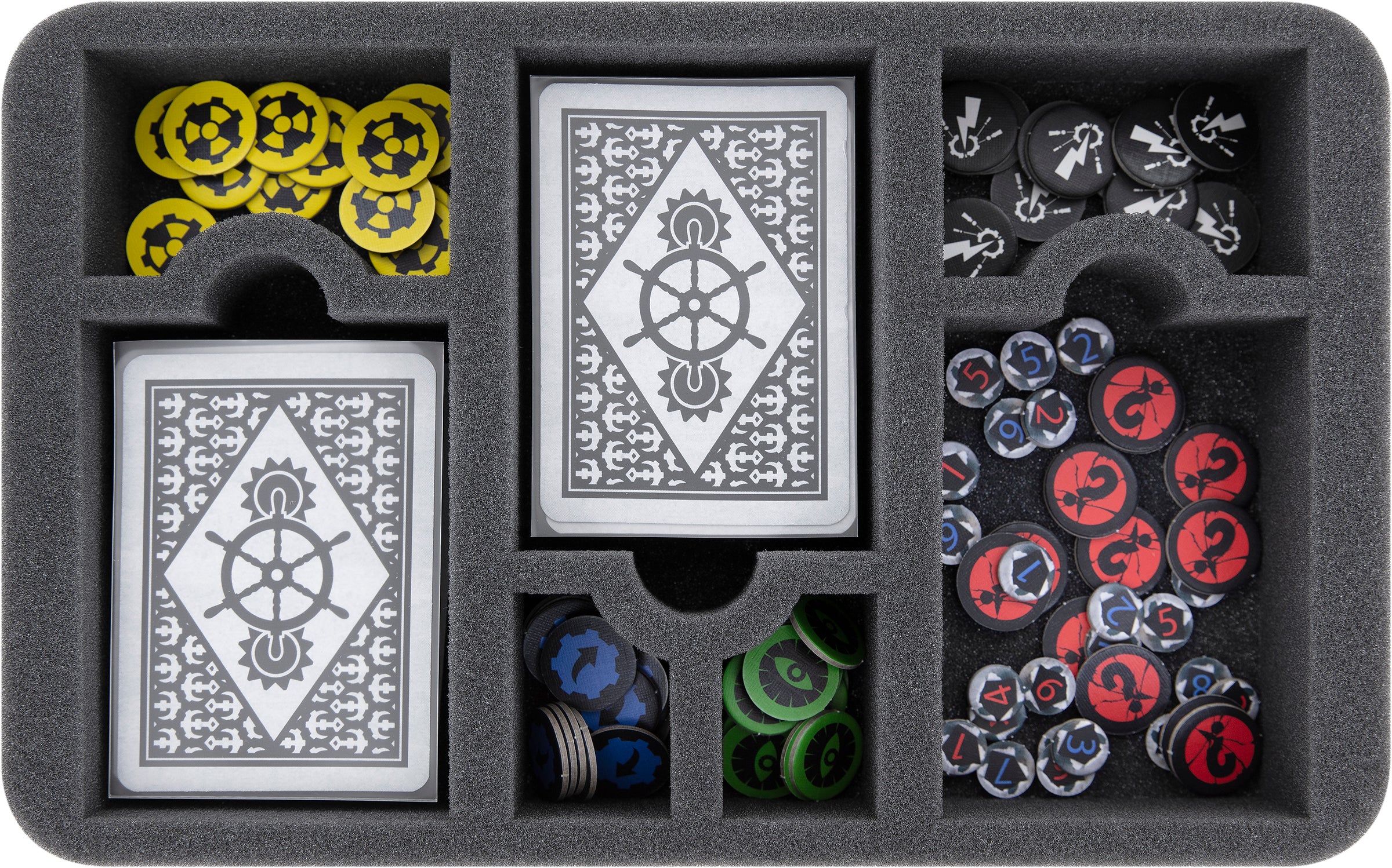 • 1 Half-Size foam tray with 12 compartments for e.g. cards and other game material (HS050A088)