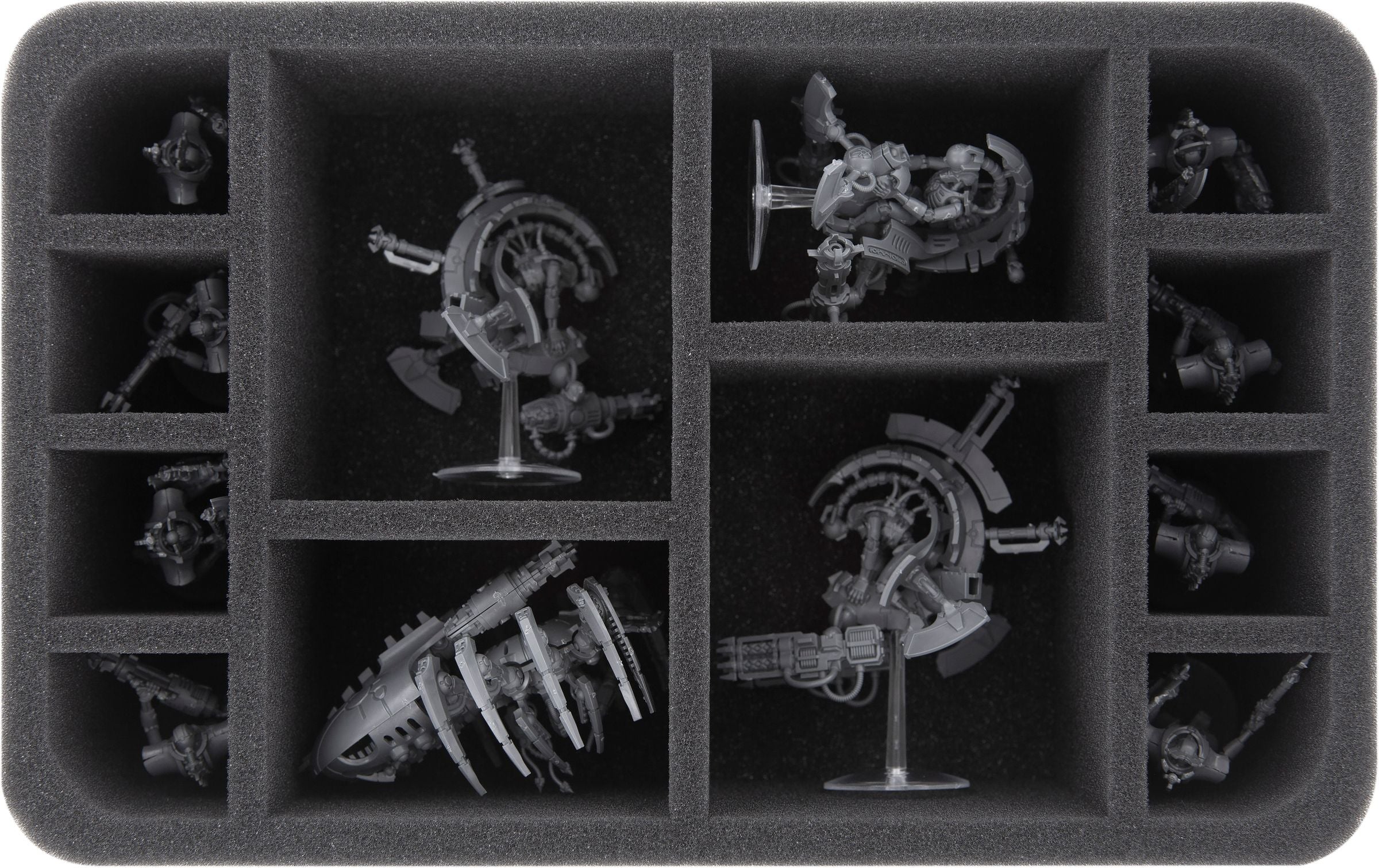 The insert with 6 large compartments is ideal for keeping medium-sized Necron models neat and protected during transport.