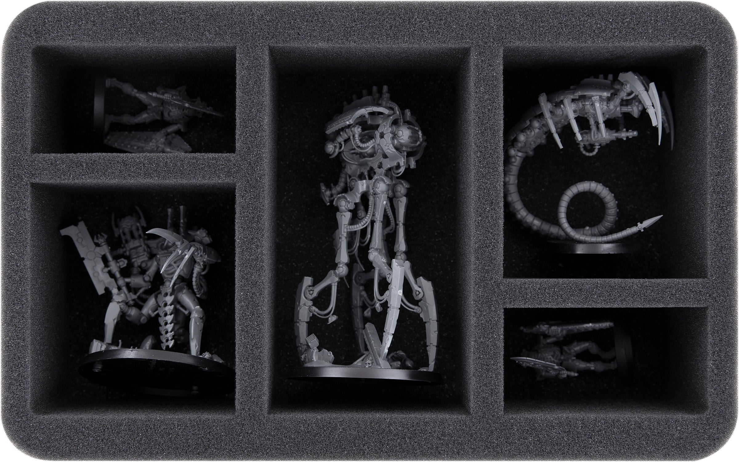 Up to 5 miniatures of the Necrons will find a safe place in this Feldherr Half-Size foam tray. The different sized compartments are ideal for keeping both larger miniatures like a Canoptek Reanimator and standard models neatly organized and well protected.