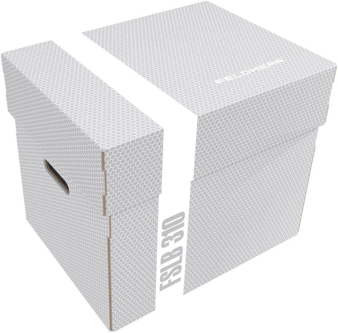 The Storage Box FSLB310 is made of coated, double-walled cardboard. This makes it not only pleasantly light, but also very tear-resistant and stable. The attachable lid reliably protects the contents from dust and other external influences. With the appropriate foam trays, miniatures, game material, and all other goods can be stored safely — and conveniently transported with the two plastic-reinforced carrying handles on the sides.