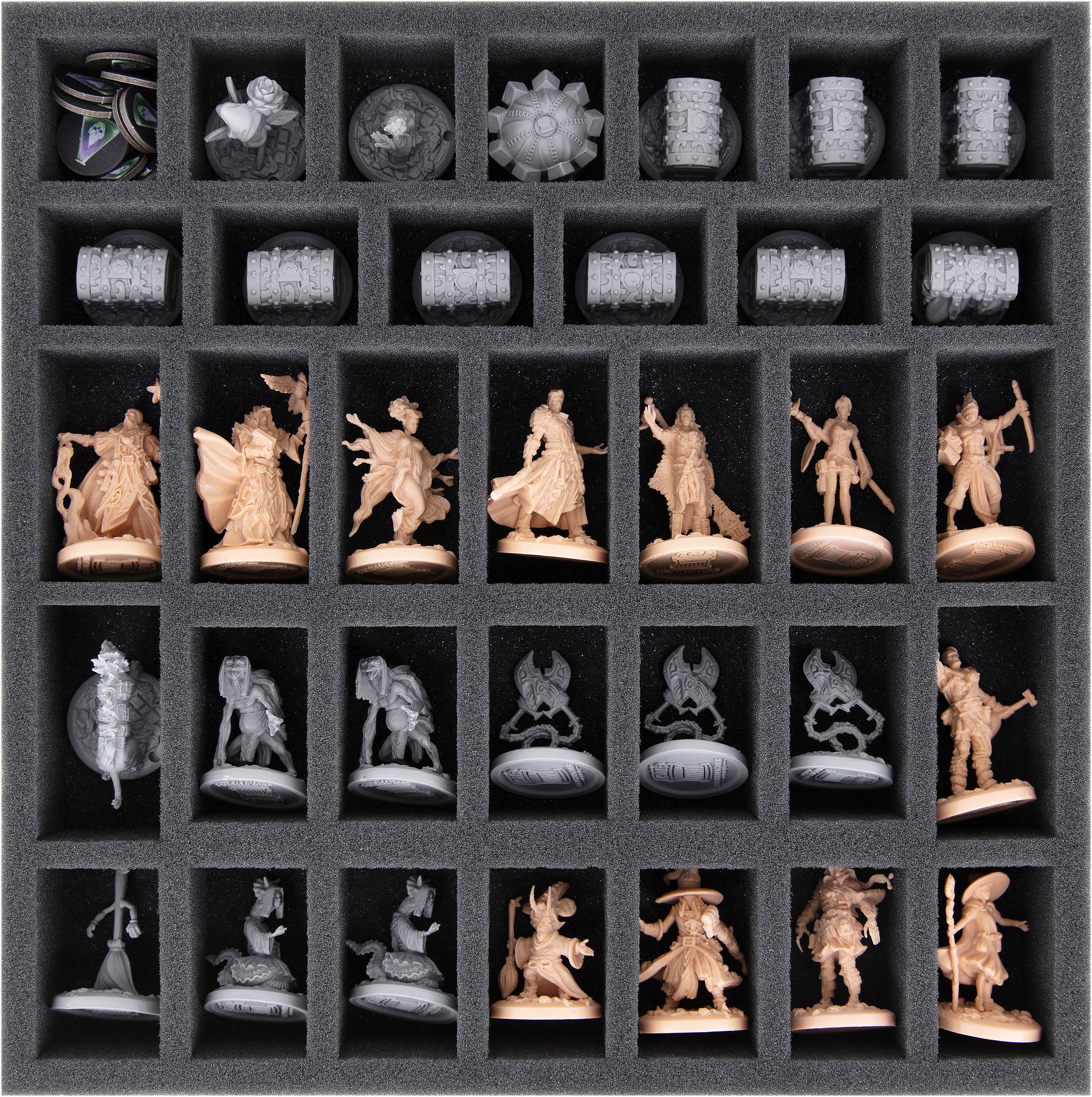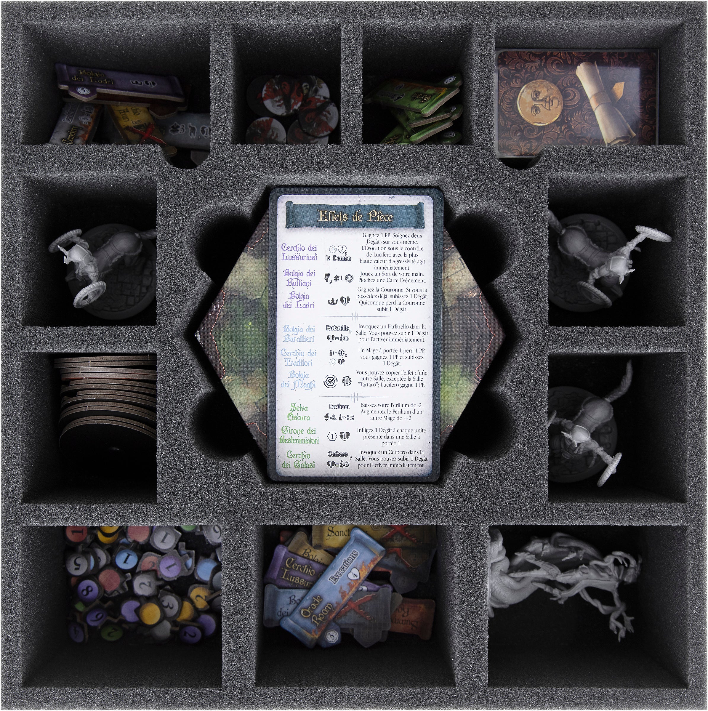 • 1 foam tray with 34 compartments for miniatures and tokens (AFMEDY040BO)