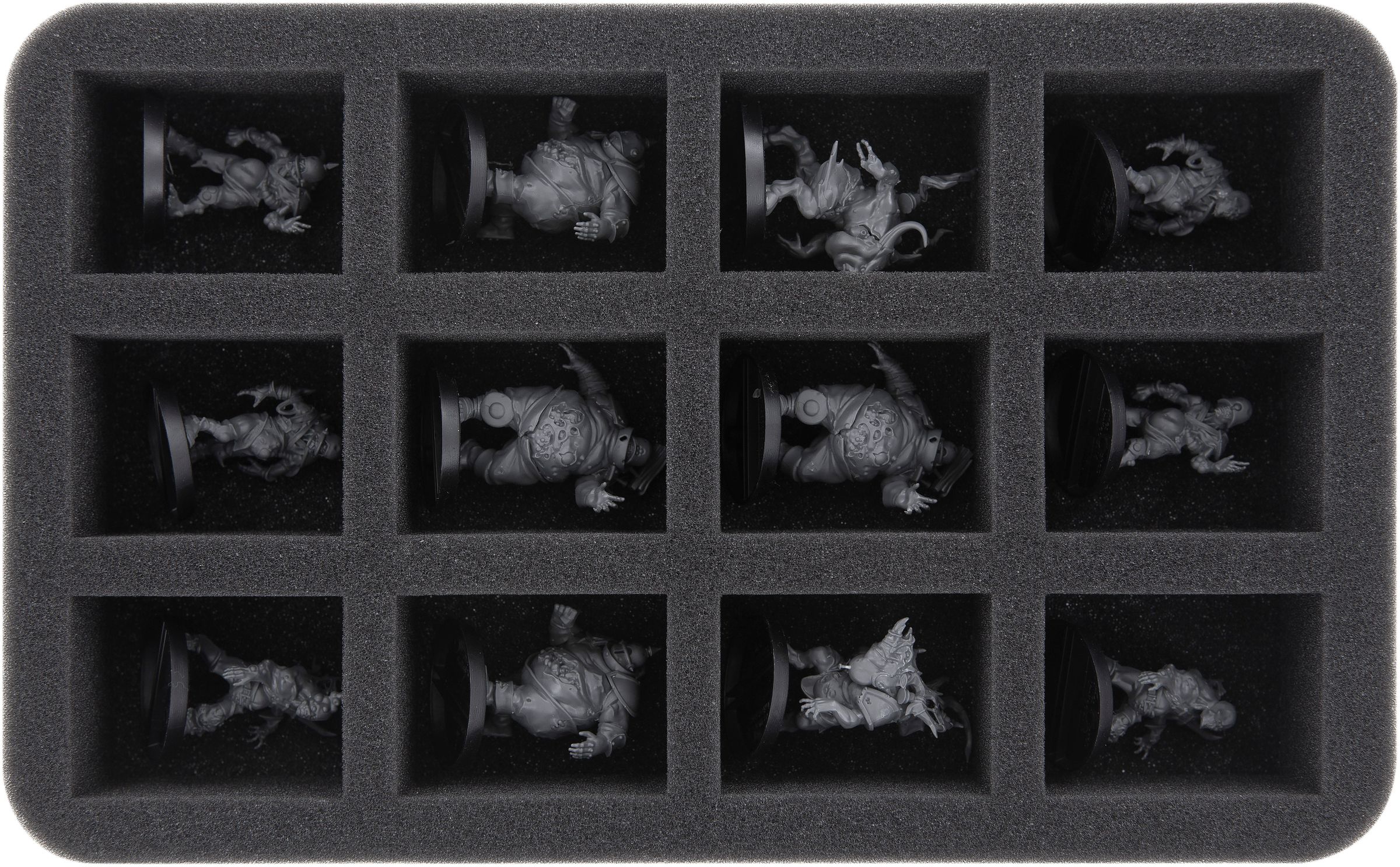 In the twelve compartments of the foam insert, each player of the team is assigned their compartment. Six Bloodborn Marauder Linemen, four Bloodseekers, and two Khorngors have a tight fit thanks to the custom-fit compartments and can not slip even when transported through the fan community.