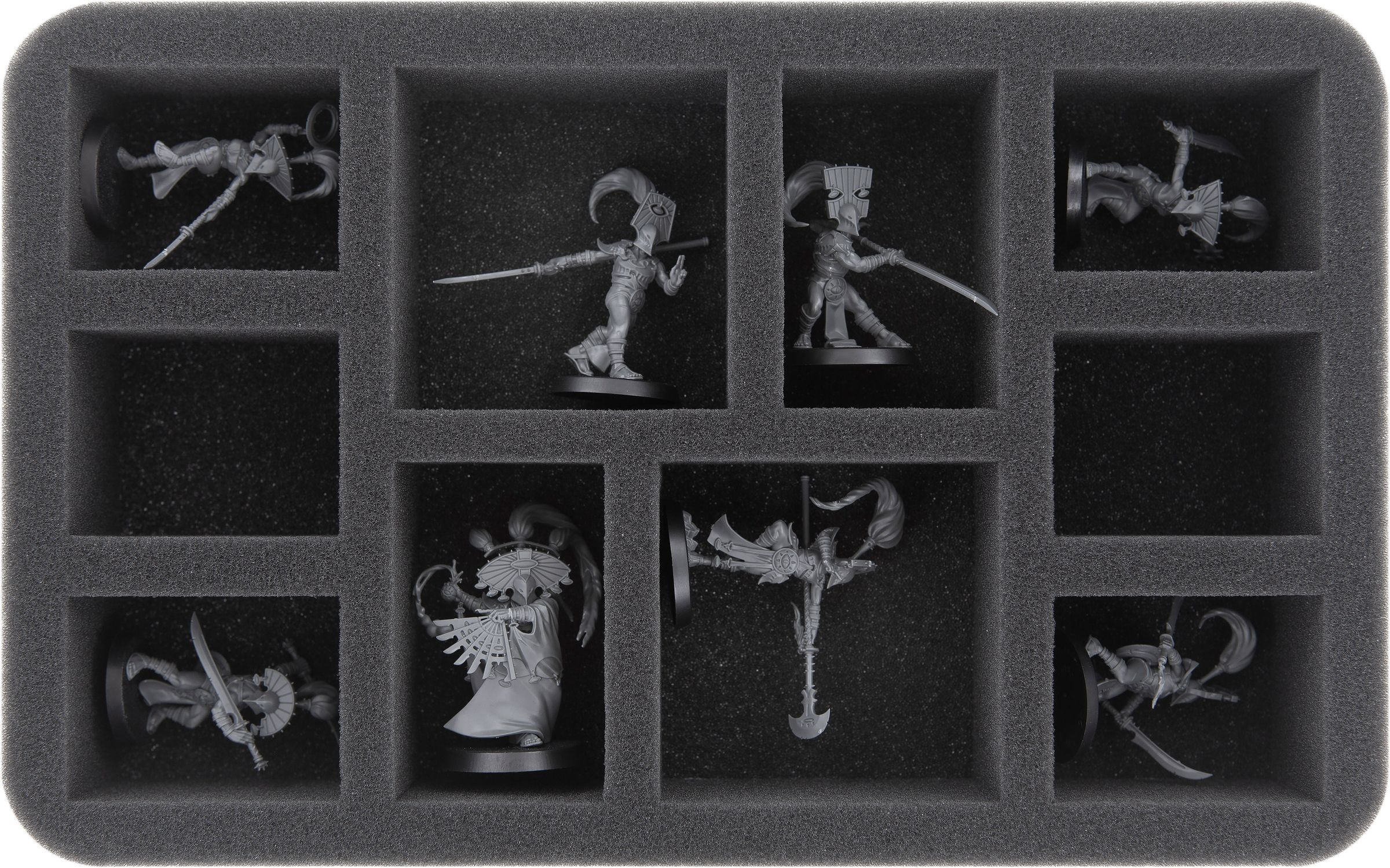 The insert offers you 10 compartments for each model of your warband, one custom-fit compartment for each miniature. Another compartment remains at your disposal.