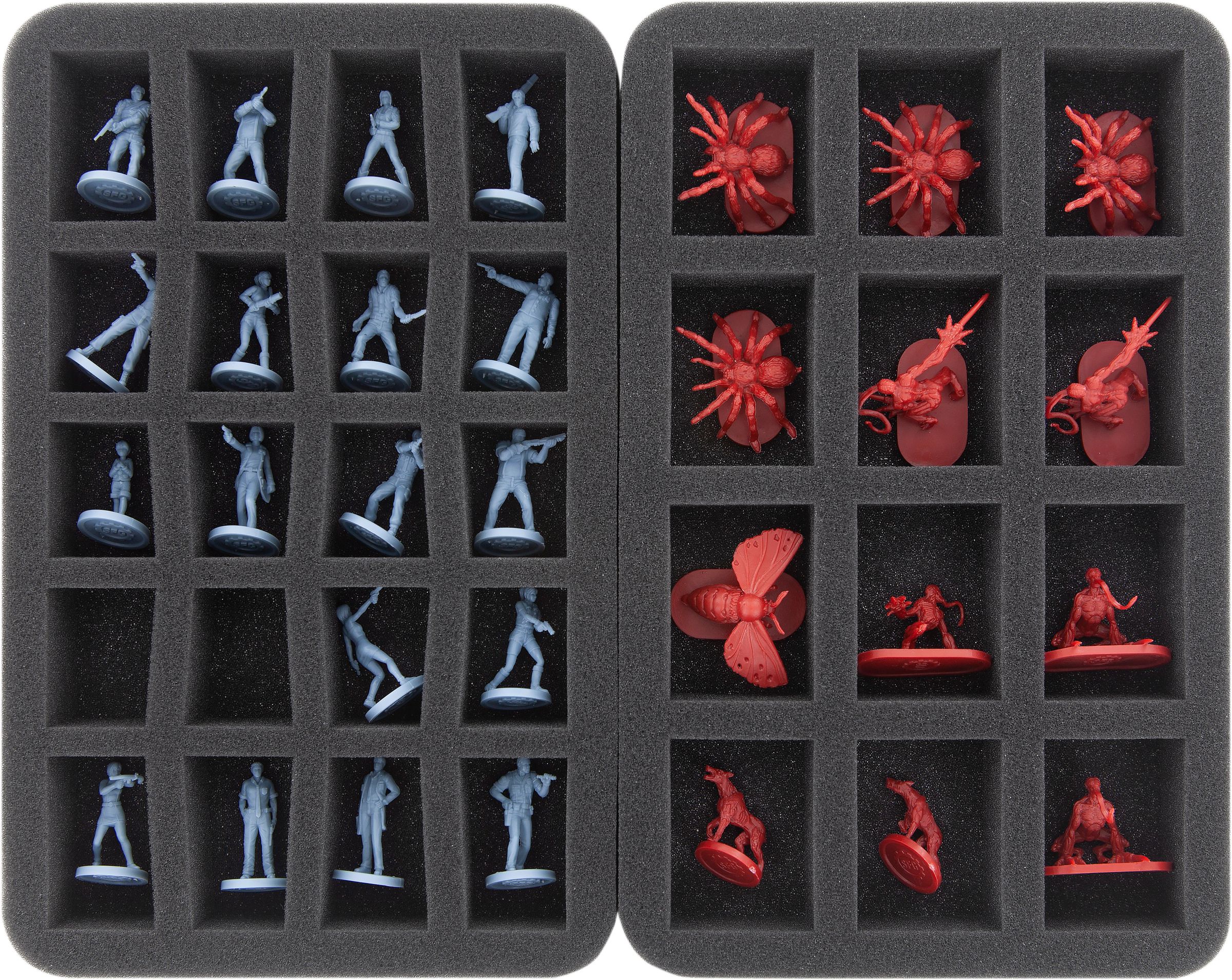 Finally, the supplied foam topper ensures that the miniatures of the upper tray are completely surrounded by foam and do not fall out on the way.