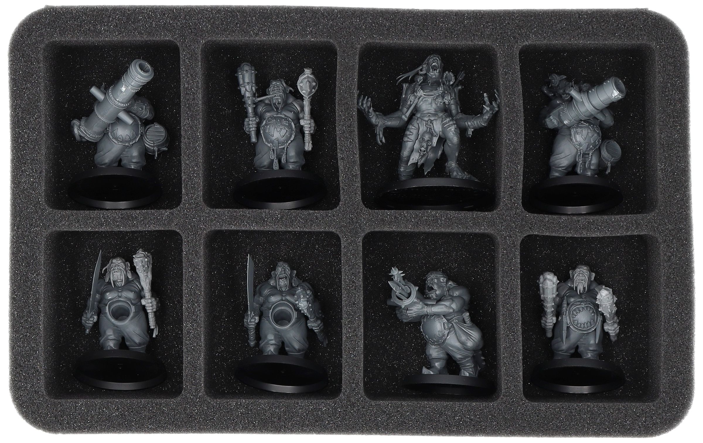 • 1 x FS090A008 – Full-Size foam tray with 4 compartments for e.g. Ironblaster, Gnoblar Scraplauncher, Mournfang Riders