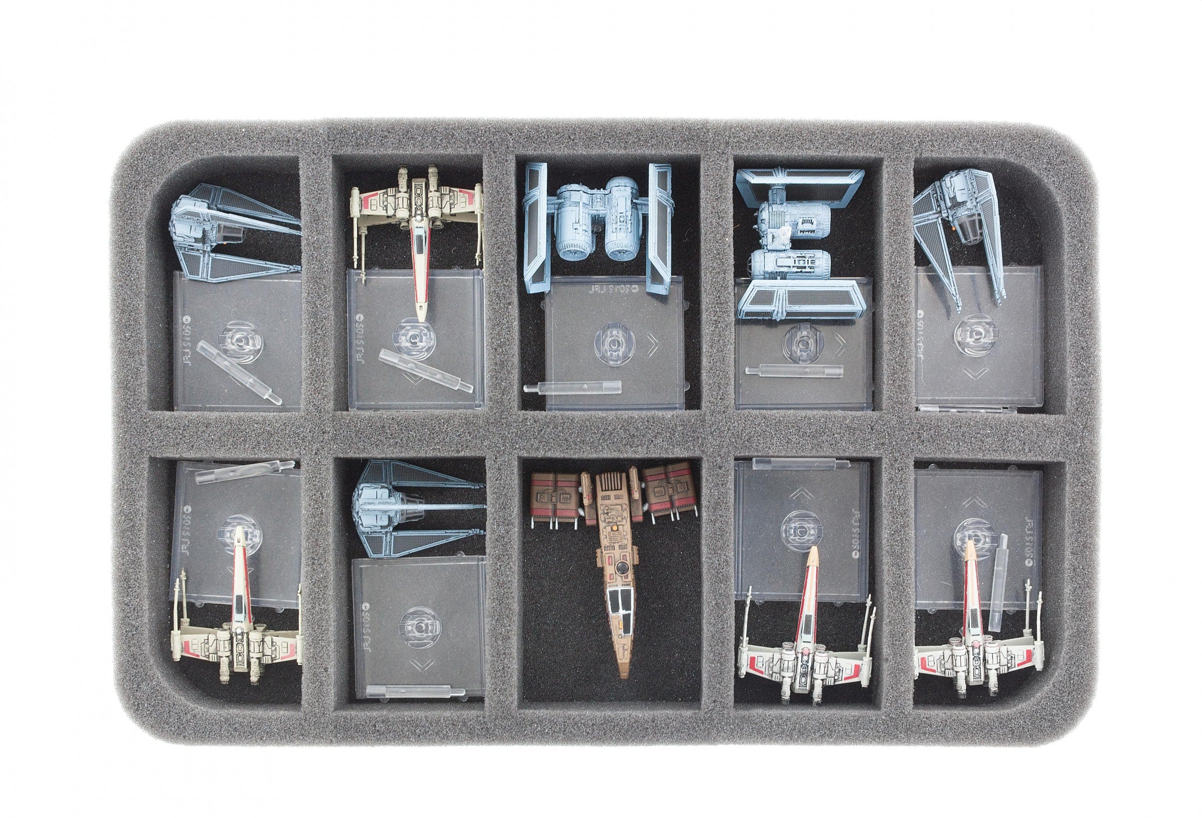 • 1 x 50 mm foam tray for 10 Star Wars X-WING Star Ships on Base