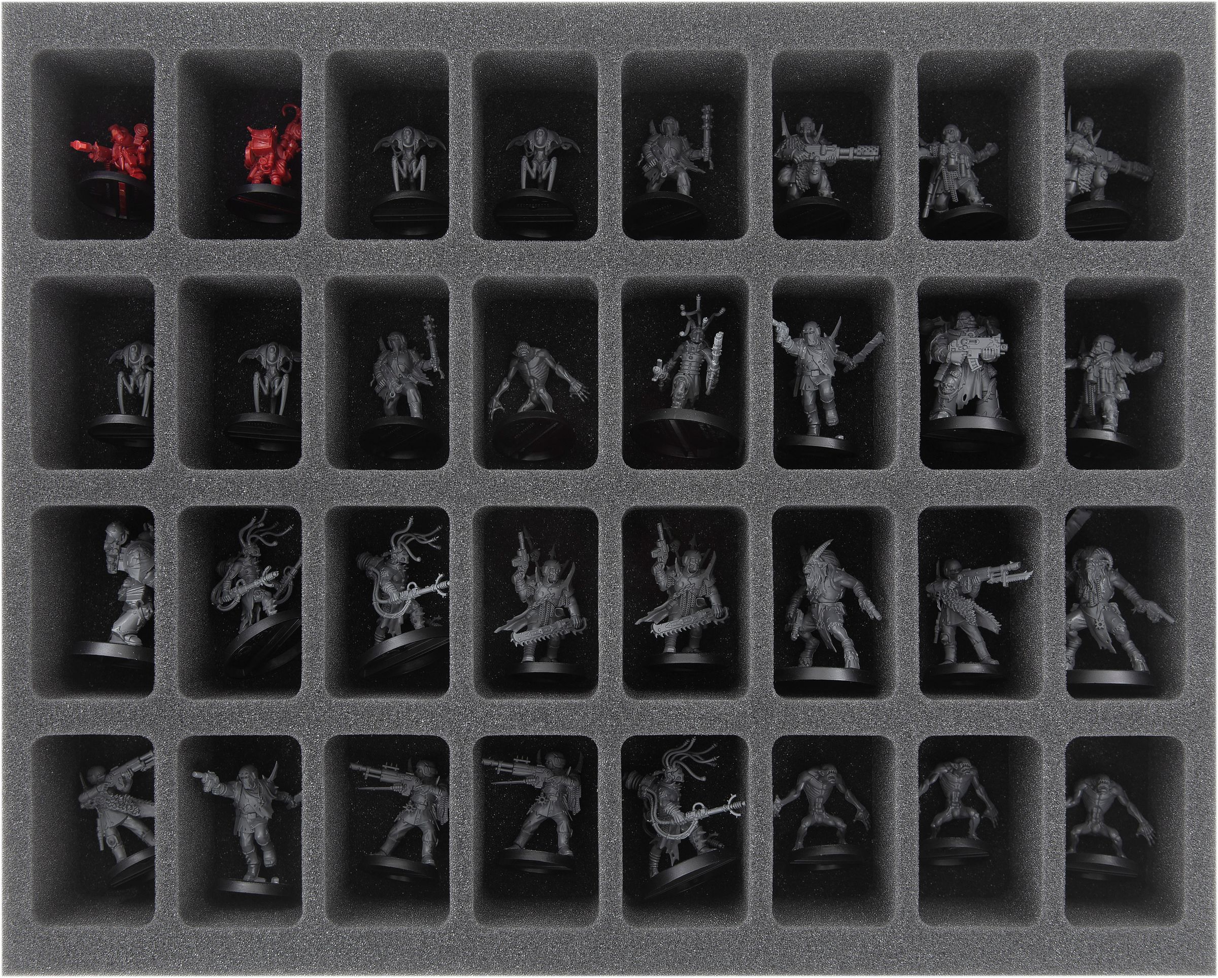 - 1 Full-Size foam tray with 32 compartments for miniatures (FSMEDS050BO)