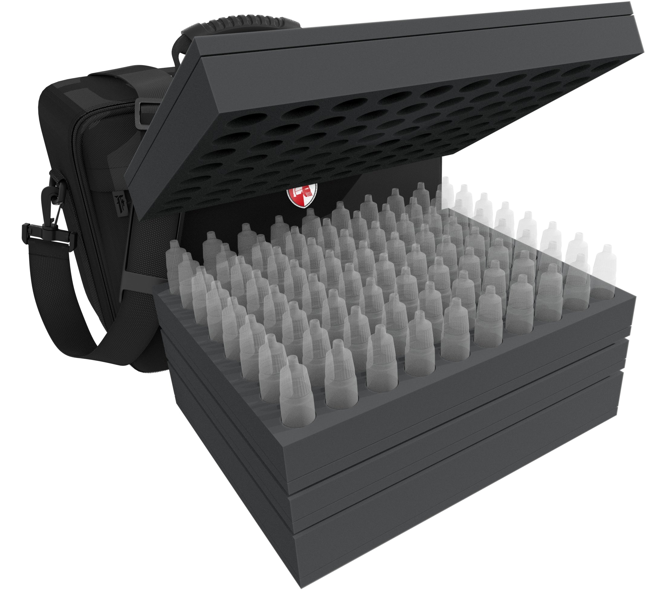 A matching foam topper completes the set, your tools, colors and miniatures are thus neatly stowed away and always ready for take off.