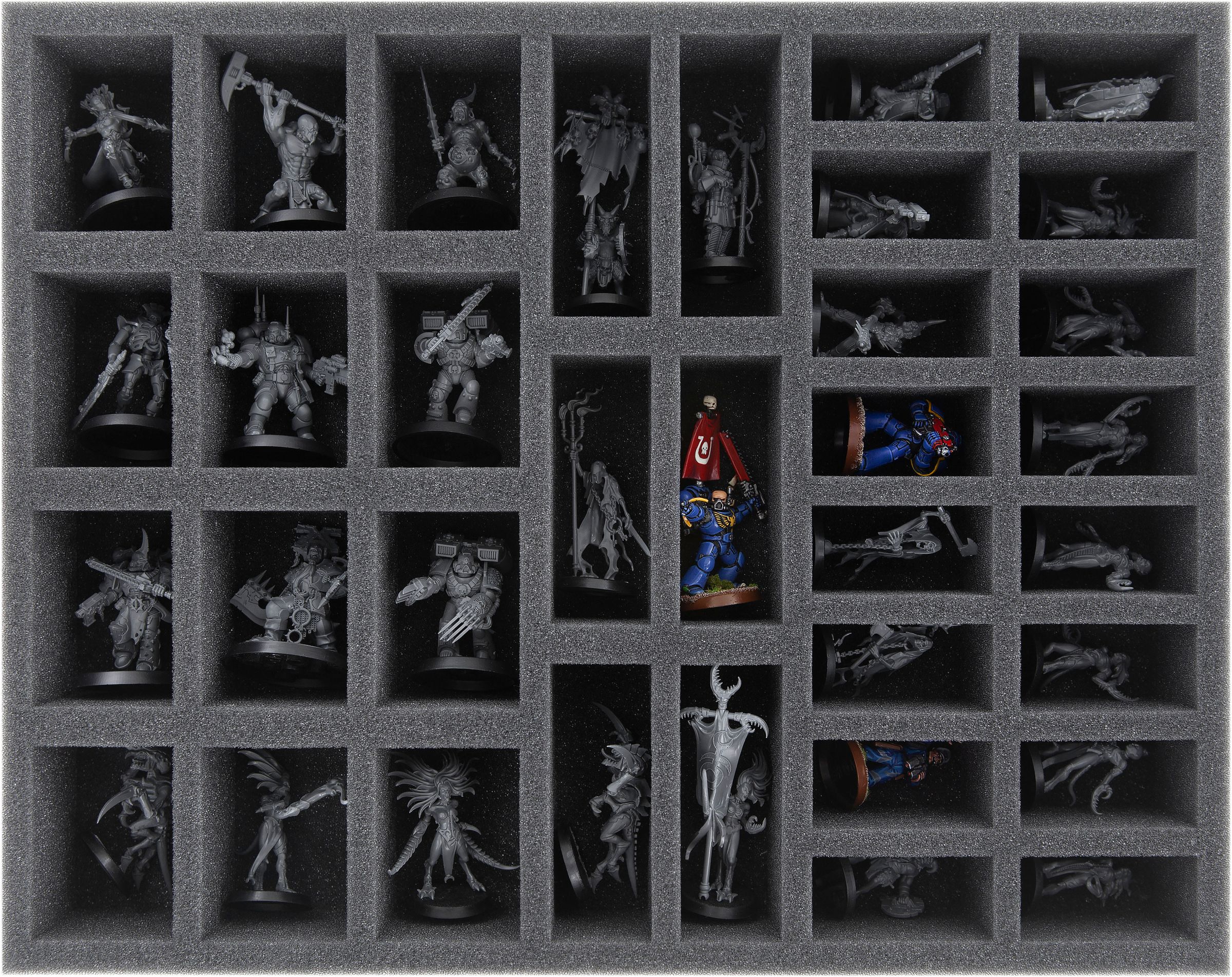 Your assembled models are perfectly accommodated here and the freshly glued parts are best protected from damages. Painted miniatures are also preserved from abrasion and scratches thanks to the soft foam.