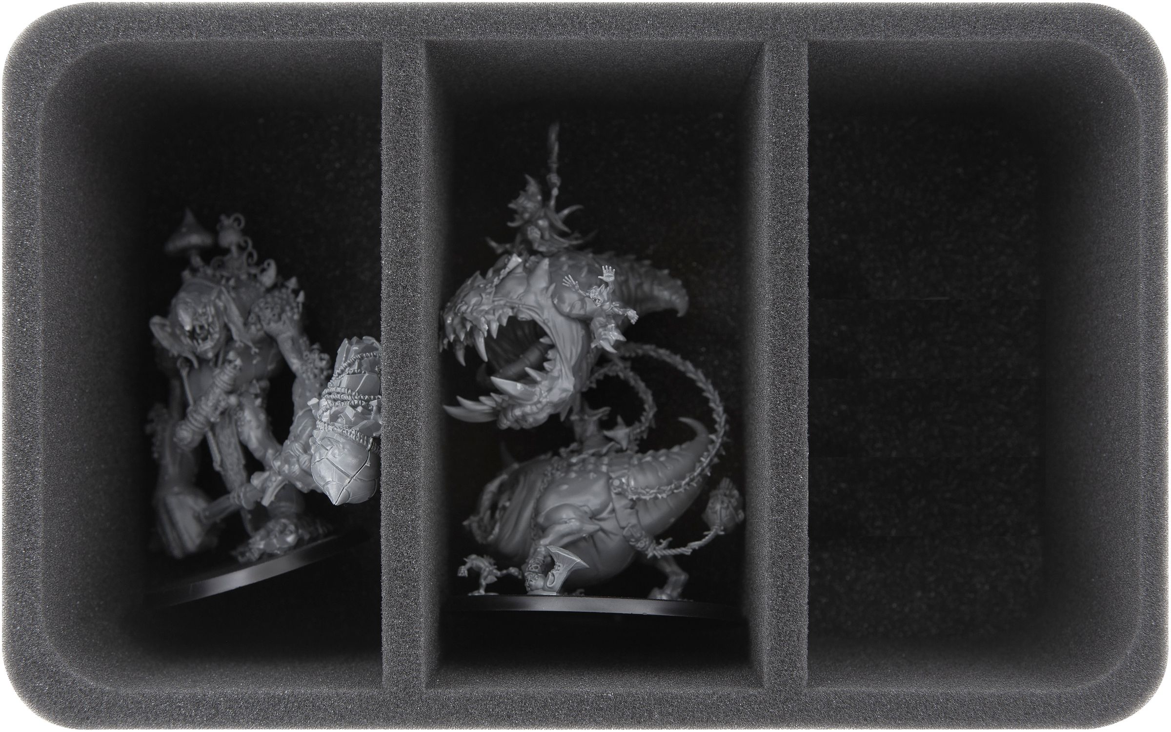 - 1 Half-Size foam tray with 3 compartments for e.g. Loonbosses on Giant Cave Squig, Loonbosses on Mangler Squigs (HS100WH54)
