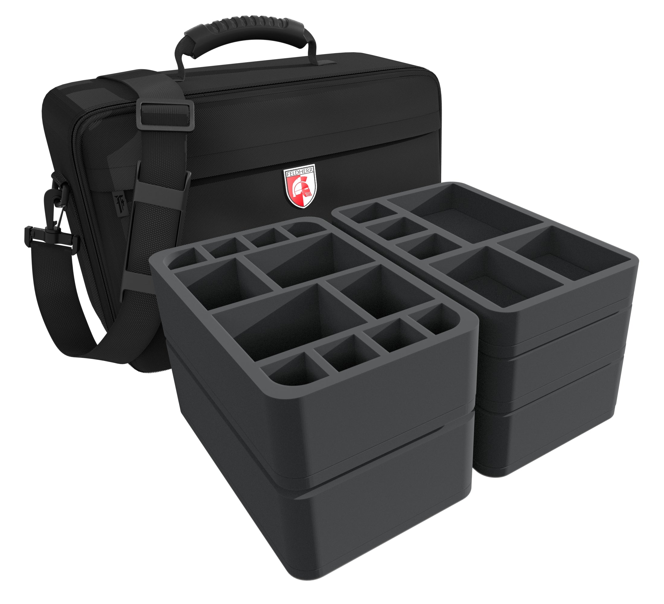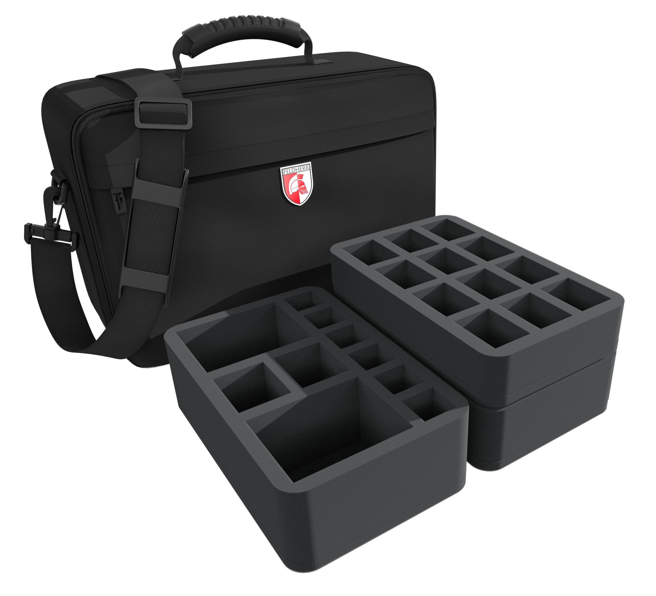 This MEDIUM PLUS bag, filled with matching Feldherr foam trays, holds up to 48 miniatures of your crews + cards and game accessories.