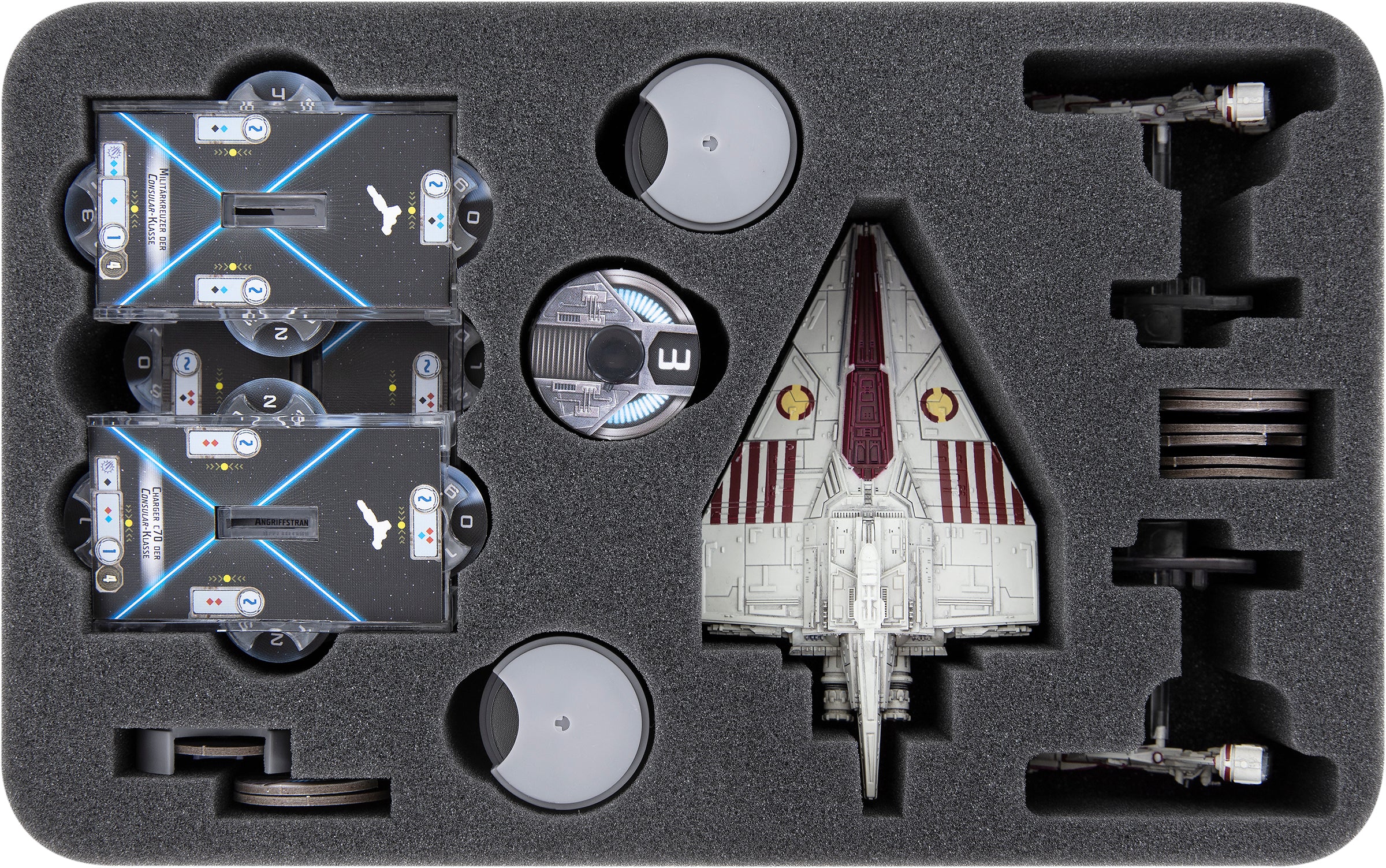 • 1 Half-Size foam tray for 2 Consular-class Cruiser + 1 Acclamator-class Assault ship incl. accessories (HSMFAT050BO)