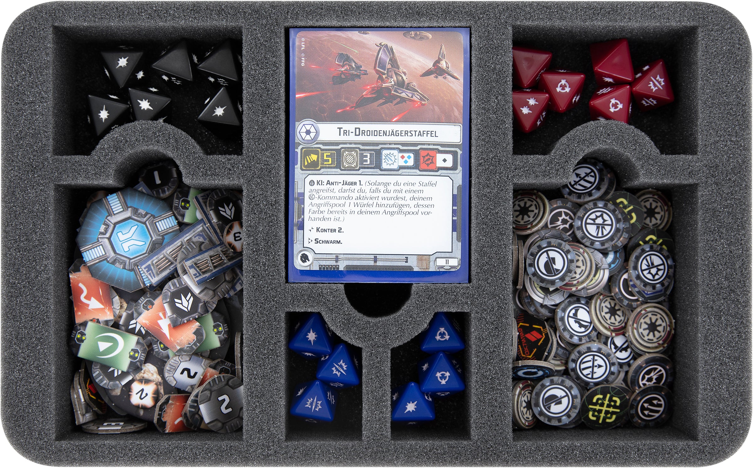 • 1 Half-Size foam tray for cards, dice, and further game material (HSMEQO050BO)