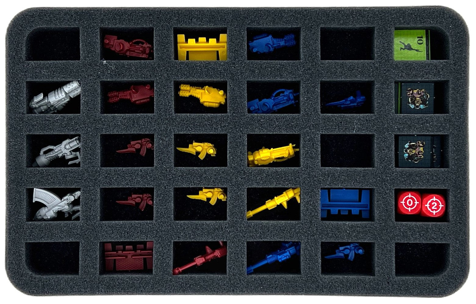 To protect your miniatures, various weapon options, and to sort your game materials, you have a total of three custom foam inserts.
