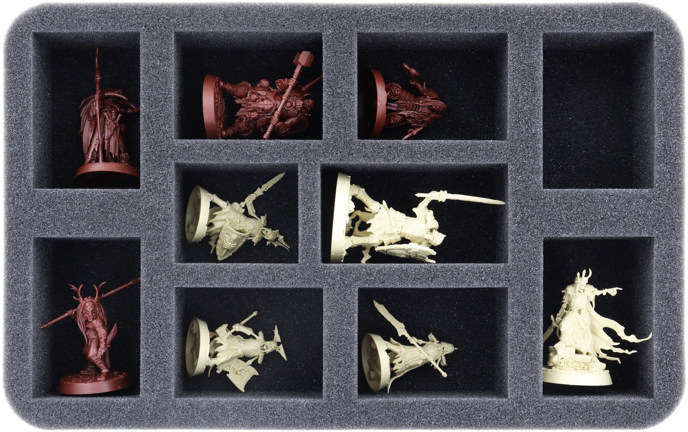 Custom-fit compartments made of soft foam reliably protect your miniatures from damage and also ensure that your painted units arrive safely at the tabletop without scratches.