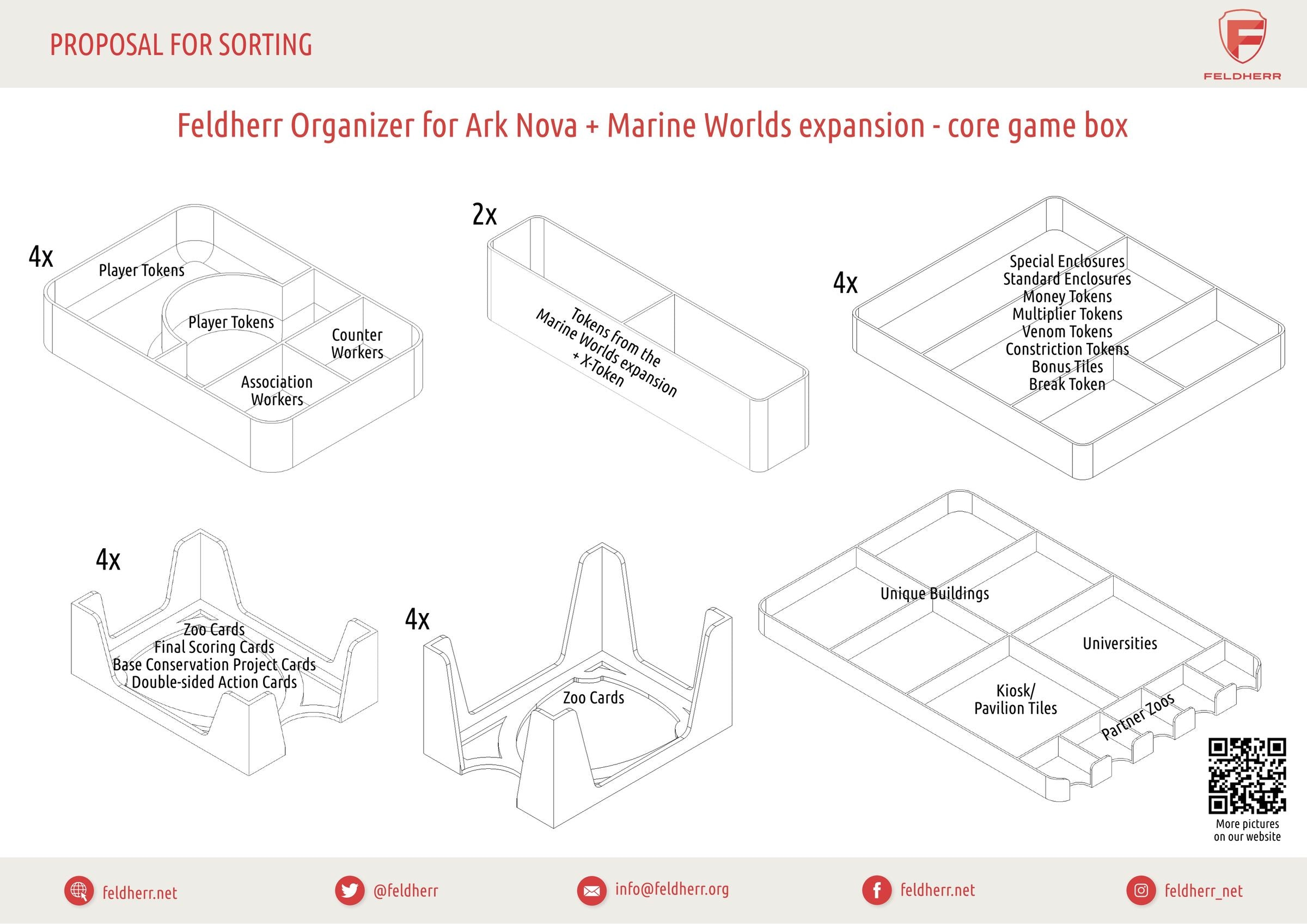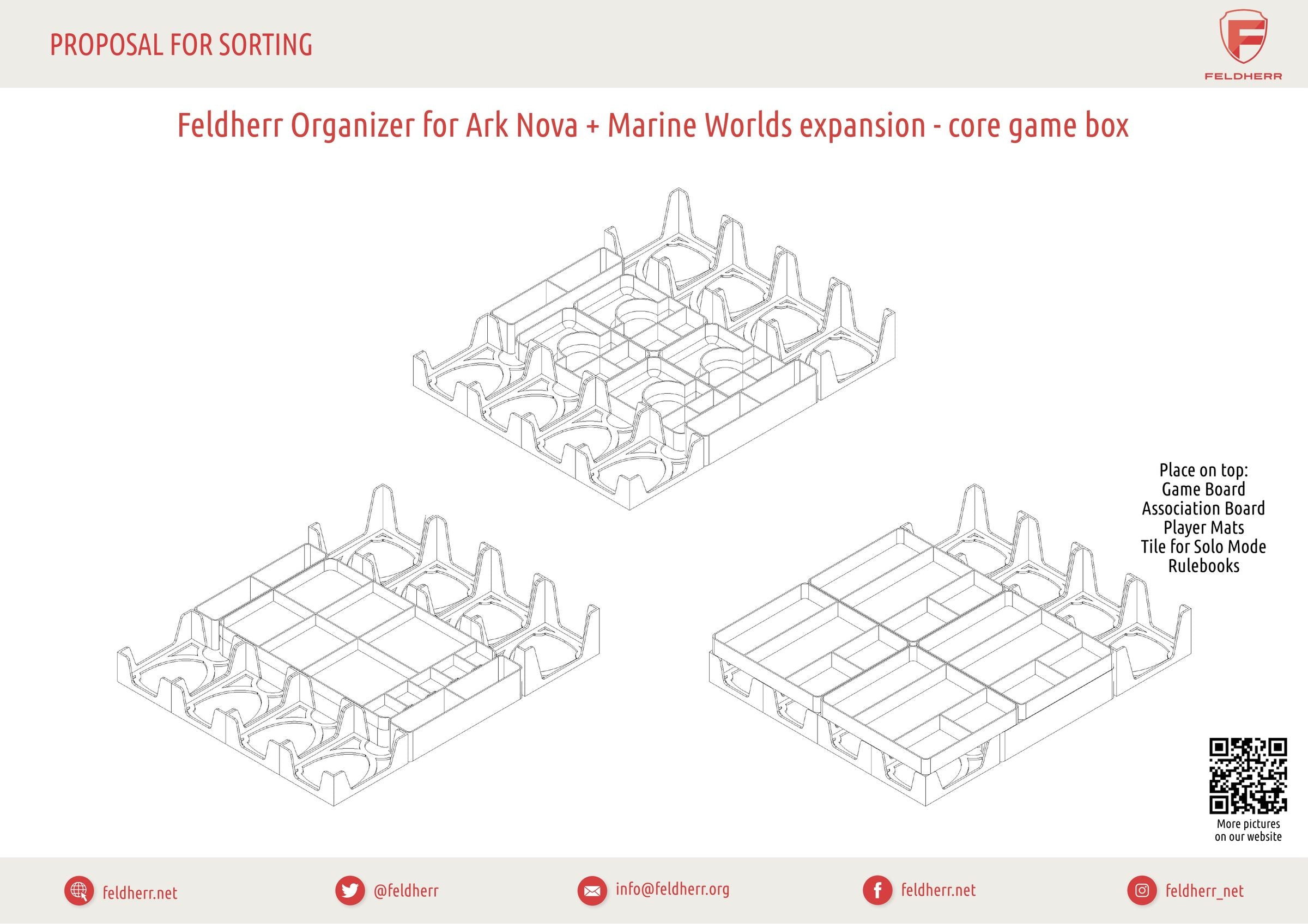 The days of dumping your game material in the box and hoping to find the right token whilst playing are also over. With the Feldherr Organizer you have all the accessories from the core game and the Marine Worlds expansion under control, in the box and on the tabletop. Everything is neatly sorted, you have the important components ready at hand, and the game is more fun.