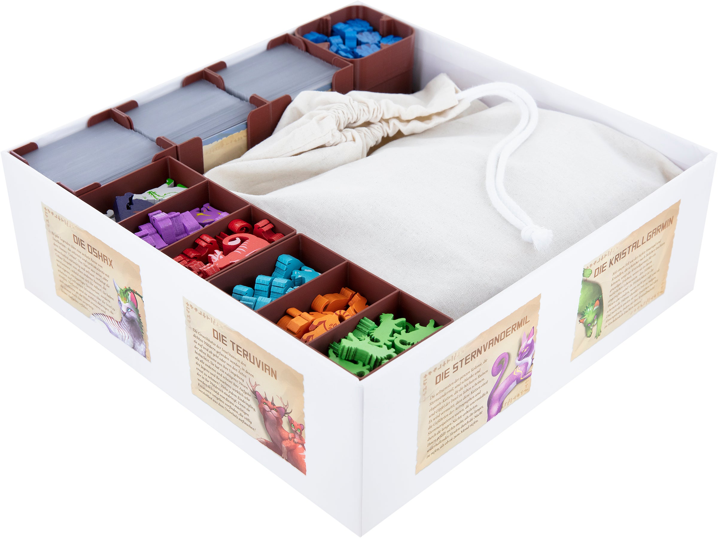 • Please note: there are different versions with different board game box dimensions. This set is only suitable for the version with the internal dimensions 280 mm x 280 mm x 98 mm.