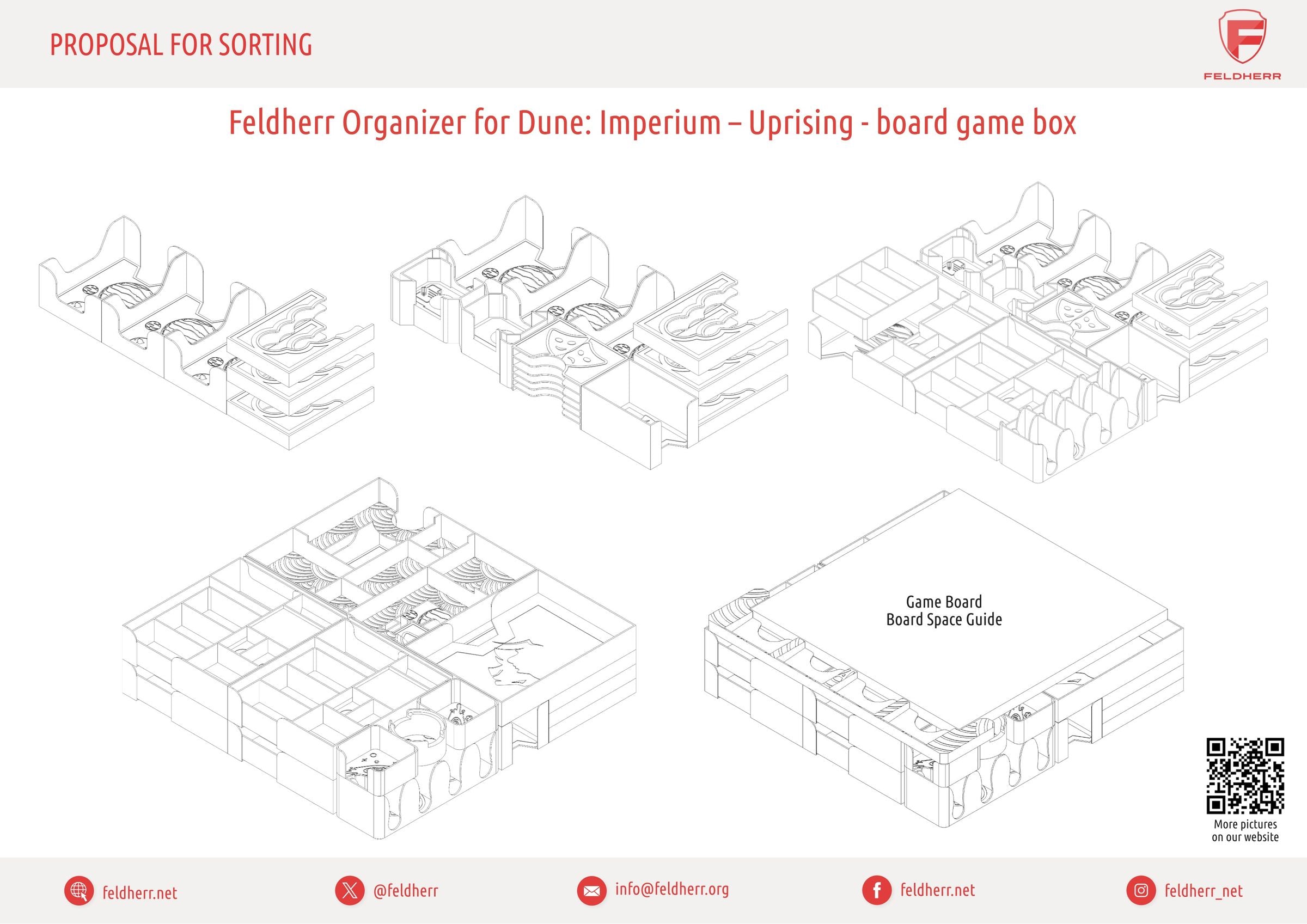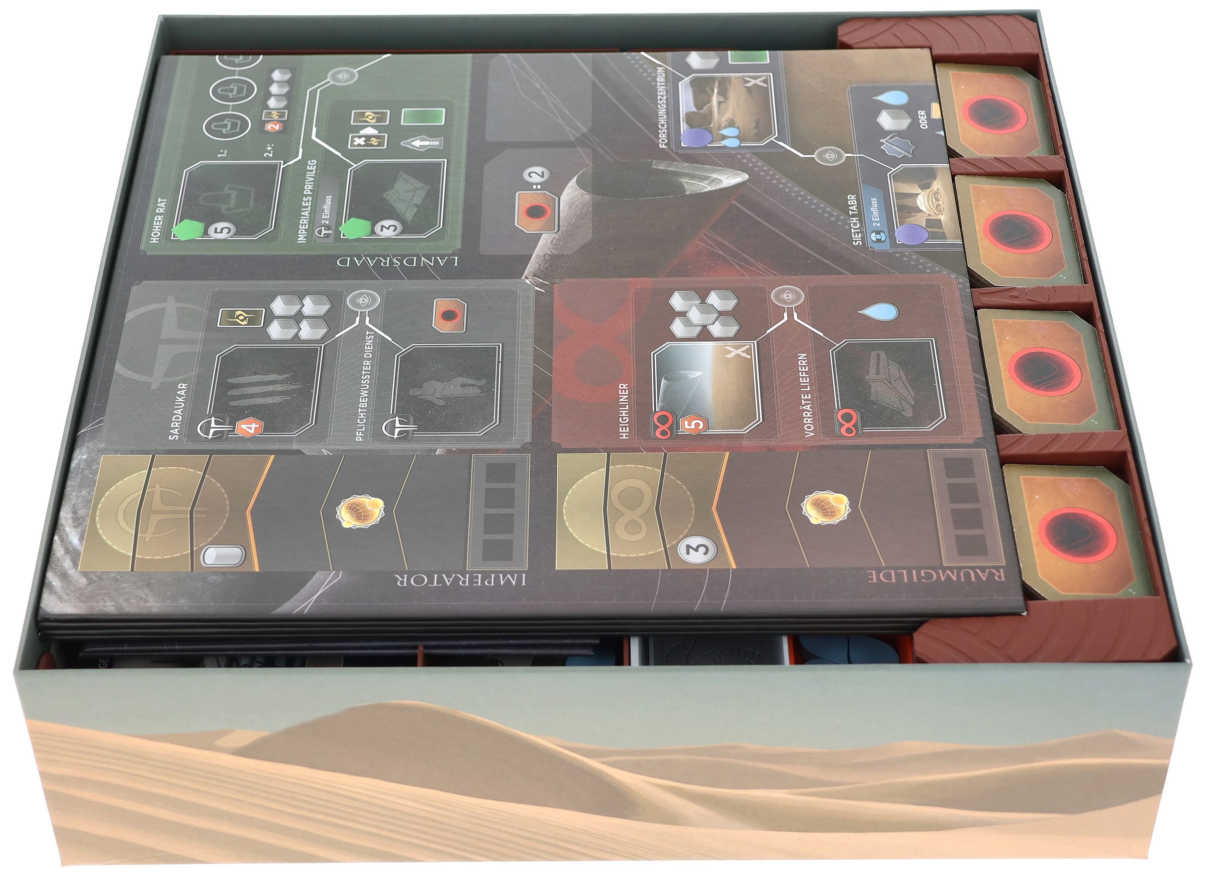 House Atreides faces its greatest challenge: securing control of Arrakis and defeating its rivals. To keep you fully focused on the complex strategies and intrigues of “Dune: Imperium - Uprising”, this Feldherr Organizer offers you the perfect order for your game materials - for a smooth and intense gaming experience.