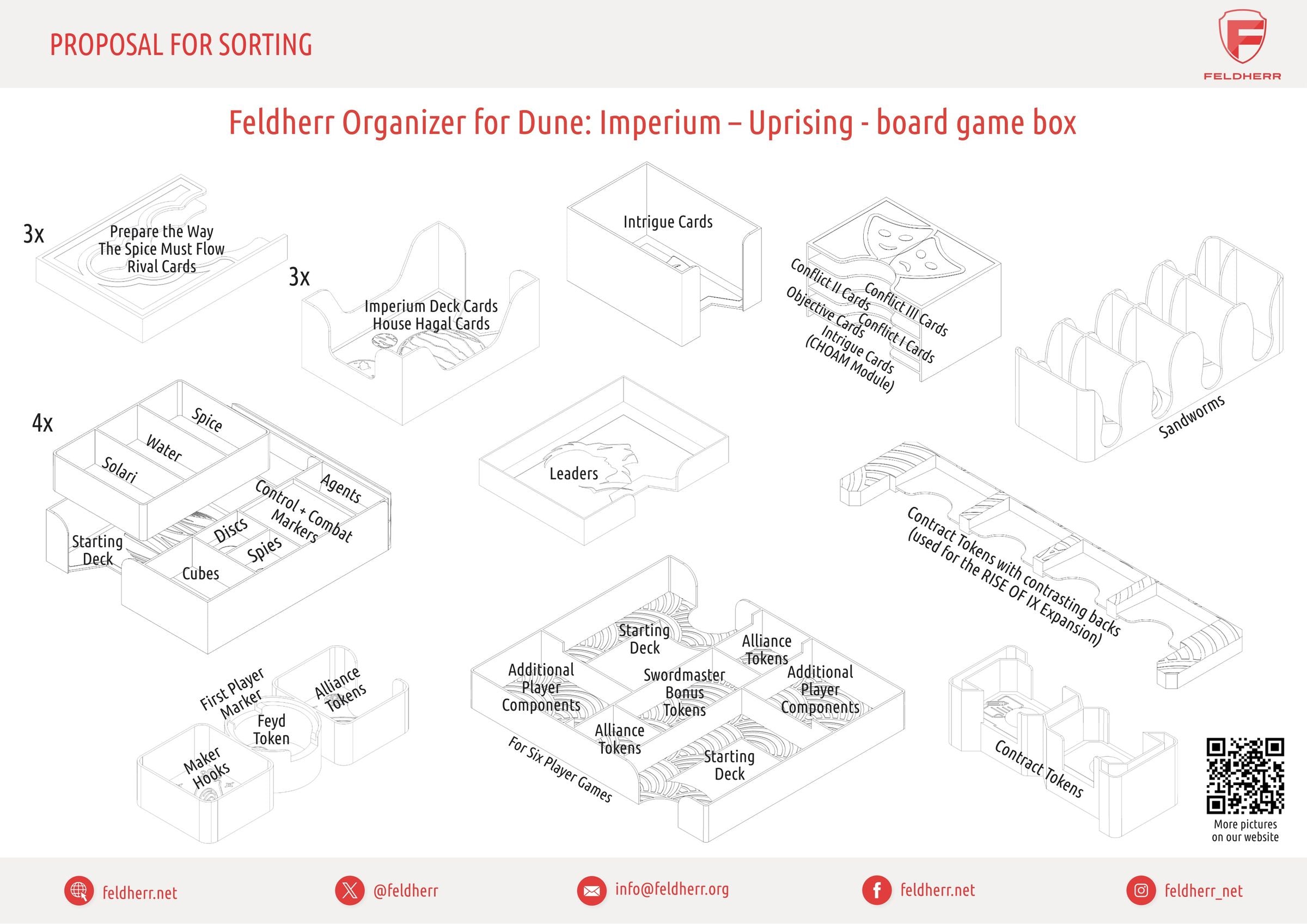 • The Organizer made of sturdy plastic fits exactly into the core game box of “Dune: Imperium - Uprising” (dimensions of the sorter: 290 mm x 290 mm x 77 mm).