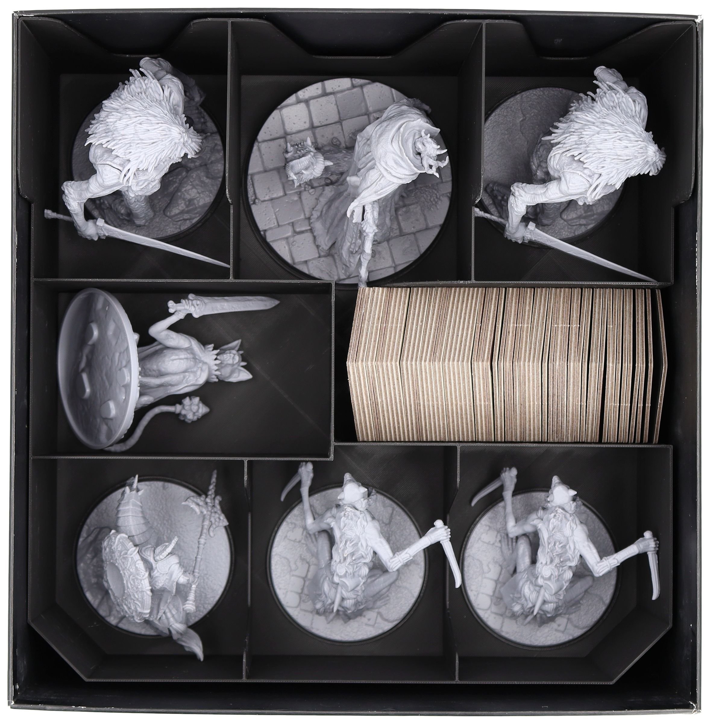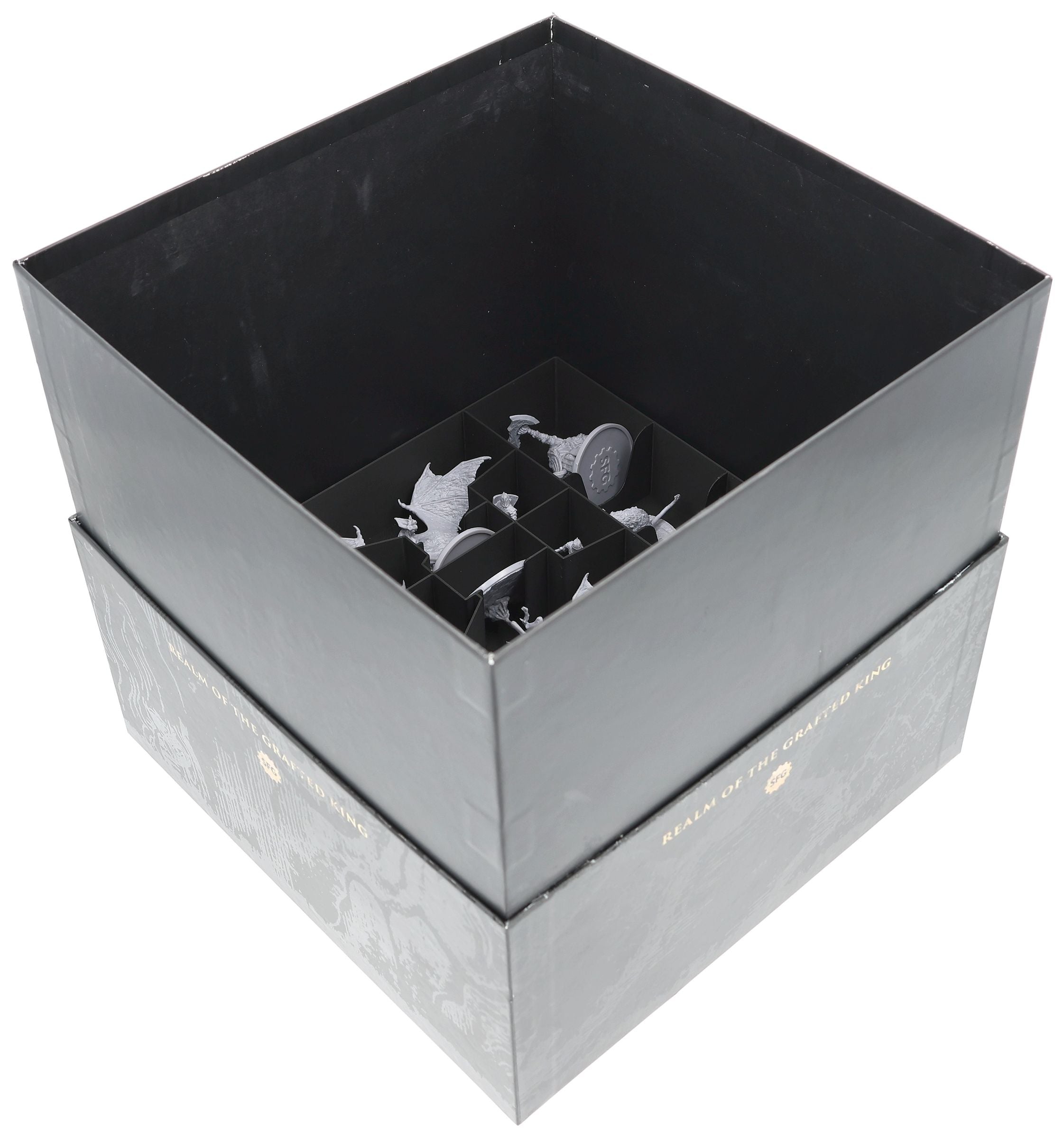 • Individually customized compartments for miniatures protect them from damage during storage and transport
