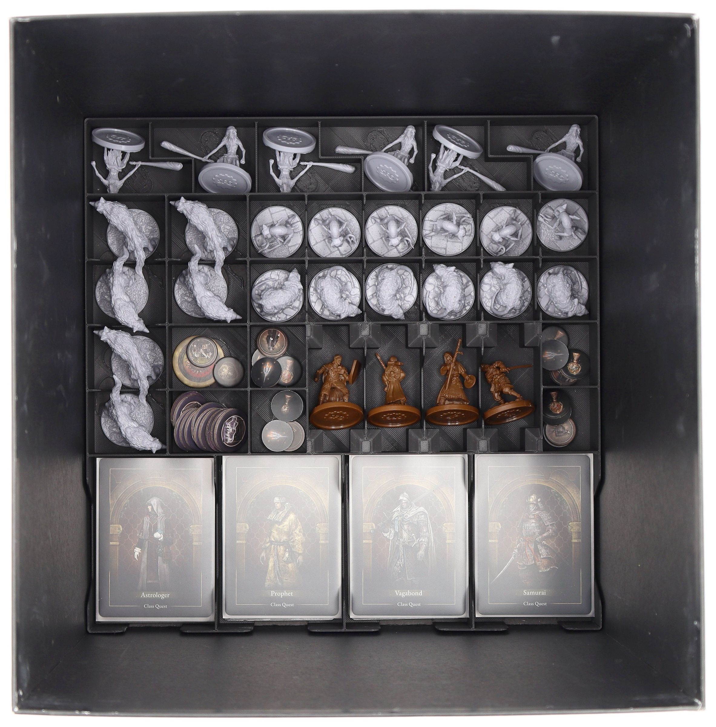 • The sturdy plastic organizer fits perfectly into the board game box of Elden Ring: Realm of the Grafted King (dimensions of the organizer: 283 x 283 x 285 mm)